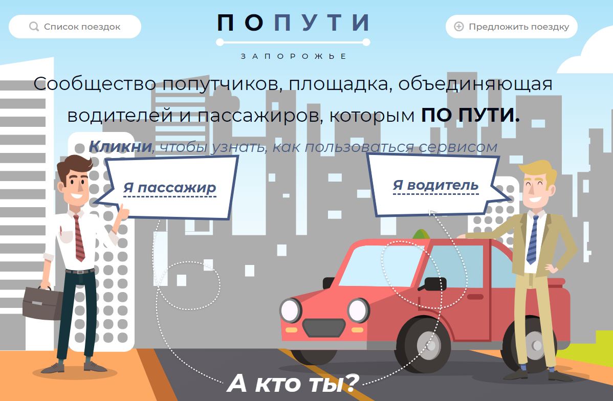 Новий соціальний проект розрахований як на автомобілістів, так і пасажирів. Наразі найдевший з усіх можливих додатків міста Запоріжжя. Кожен бажаючий водій має змогу допомогти мешканцям міста та трохи розвантажити пасажиропотік. Очікується мобільний додаток для IOS і Android.