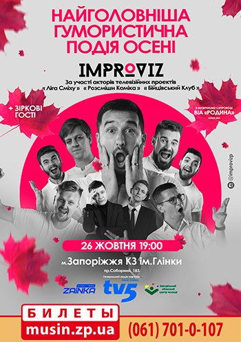 26 жовтня, 19.00 - найголовніша гумористична подія осені "Improviz" у КЗ ім.Глінки