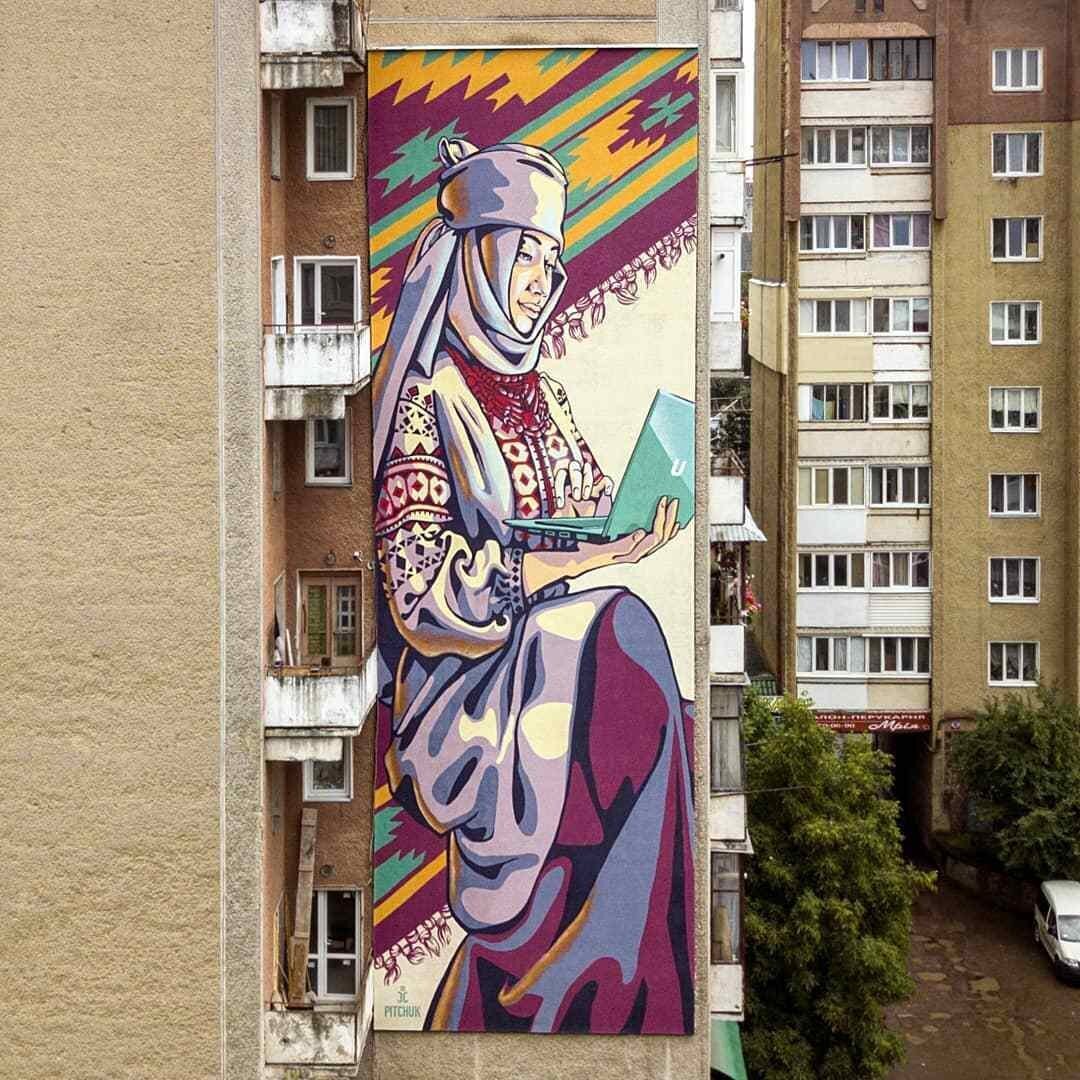 ▪️ Мурал "Гуцулка з ноутбуком", м. Івано-Франківськ, вул. Тролейбусна,4