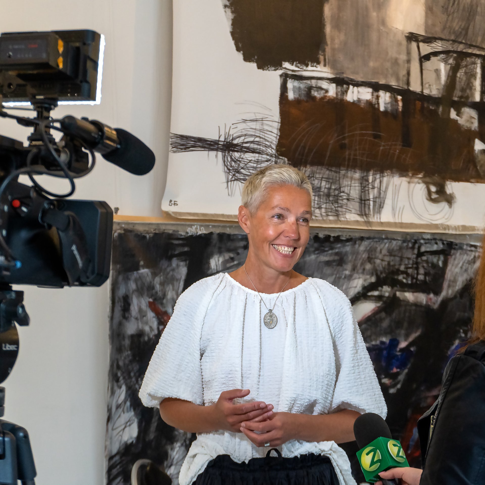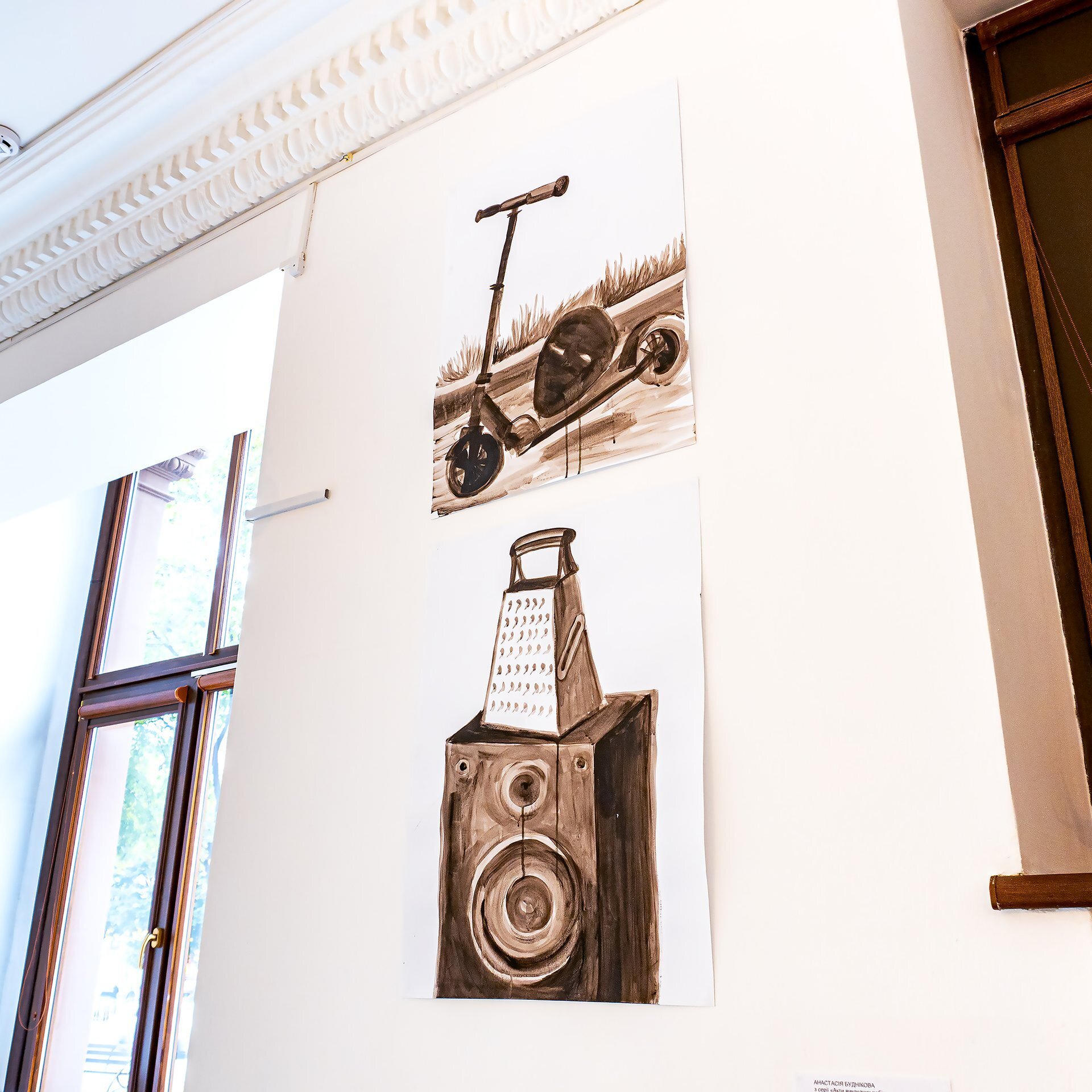 В експозиції представлені роботи 24 митців з України, Білорусі та Іспанії, які протягом двох тижнів працювали у мистецькій резиденції на Азовському узбережжі.