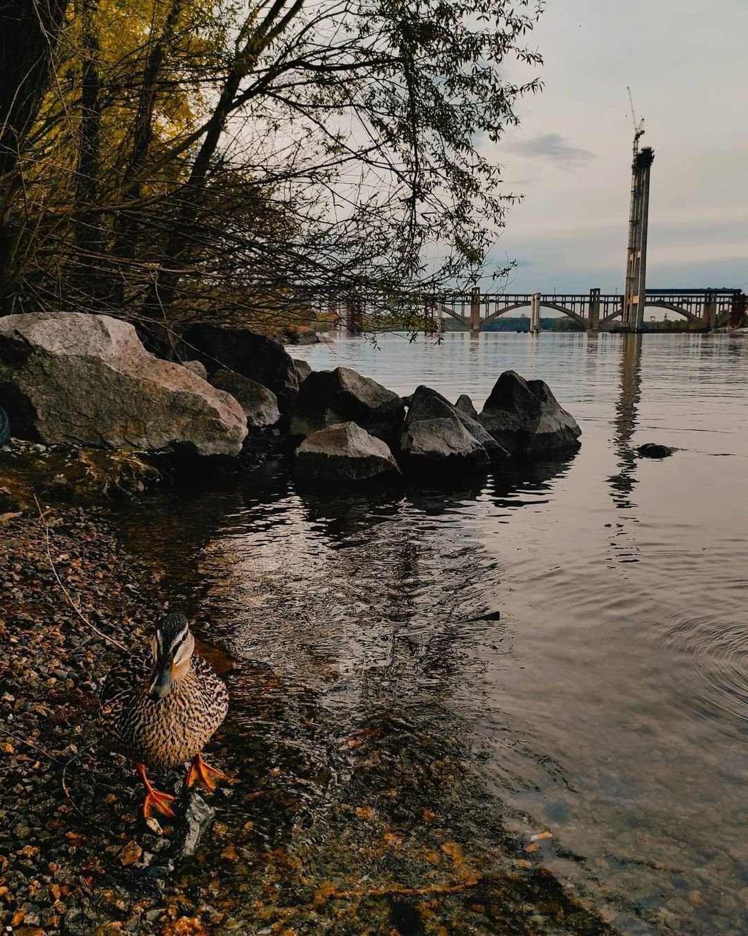 Берегову лінію складає каміння різного розміру. Прогулюватись нею приємно у будь-яку пору року. Краєвиди Дніпра та острова Сагайдачний заворожують.