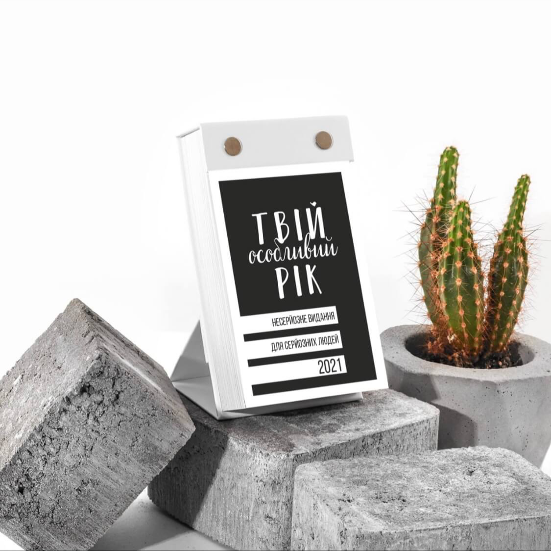 Лаконічний чорно-білий календар від Tse Tobi не буде відволікати від роботи, а іронічні та мотивуючі фрази подарують натхнення і гарний настрій.