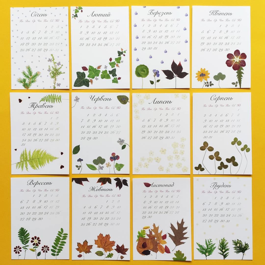 Настільний календар «Гербарій» від крамниці On a tree сподобається любителям мінімалізму та природи  Кожна рослина з гербарію була спеціально зібрана протягом року, а вже потім її зображення перенесли на папір.