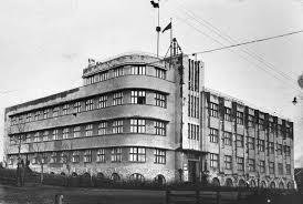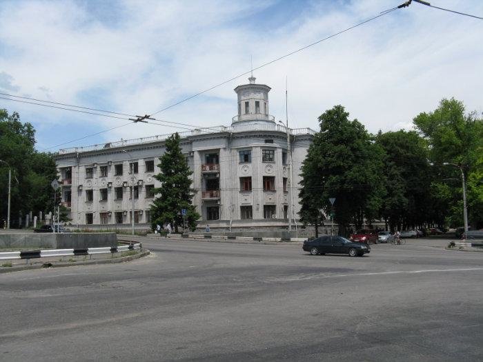 Будівлю Головного управління Дніпробуду було закладено поряд з греблею Дніпрогесу. Автори проекту архітектори С. Кравець, М. Фельгер.