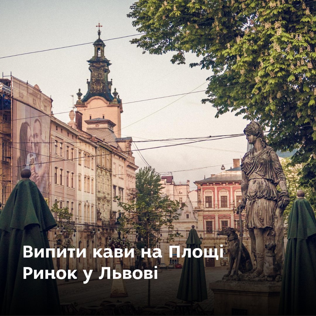 - Випити кави на Площі Ринок у Львові.