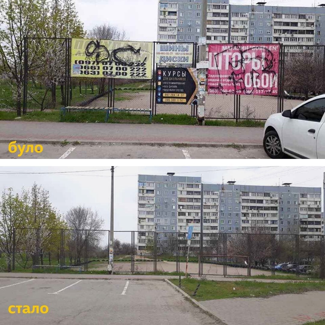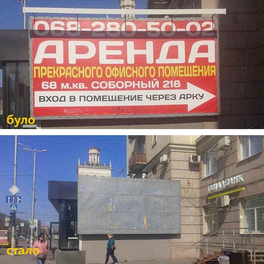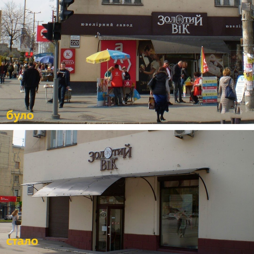 Триває робота з впорядкування зовнішньої реклами відповідно до «Коду міста». З фасадів будинків продовжують демонтувати рекламні конструкції та вивіски. Це складний і тривалий процес, але вже є помітні результати.