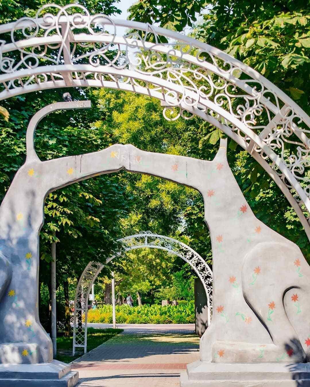 One of the highlights of Gagaria Park. According to the local sign, mutual love and a happy marriage await the lovers who will pass under the arch. The sculpture and the Alley of Lovers are the favorite place of the newlyweds' photo sessions, as the Registry Office is directly opposite.
