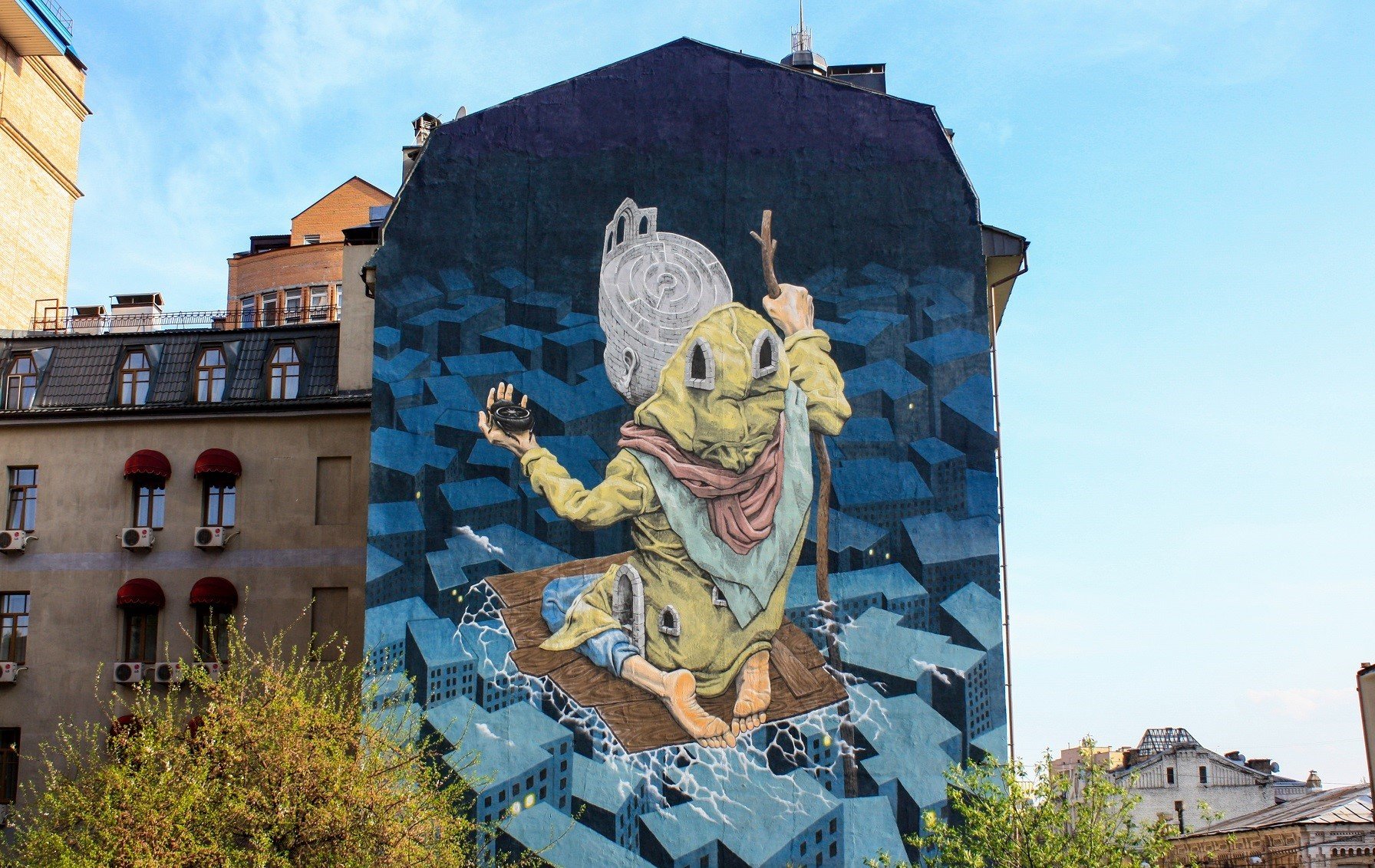 24-метровий мурал потрапив до ТОП-10 об’єктів вуличного мистецтва у світі. Автором арт-об’єкту є Рустам К’юбік. На муралі зображено людину, котра летить над містом-лабіринтом на килимі, мозок людини також являє собою заплутаний лабіринт. Цей арт-об’єкт символізує те, що кожен з нас протягом життя розв’язує певні задачі та шукає вихід з лабіринту проблем. І всі ми мандрівники, які дійдуть до свого пункту призначення.