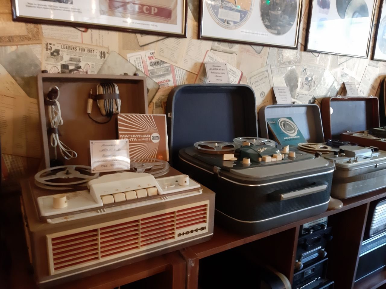 Традиційно, всі експонати в музеї у робочому стані. В залі відтворили картину минулих років - обладнали кінопроекційну сільського клубу середини ХХ століття, де транслювалися фільми, оформили інсталяції на тему «радянська квартира» і «за прилавком універмагу». Велика частина експозиції присвячена старовинним грамофонам, радіолам і магнітофонам з радіоприймачами .
