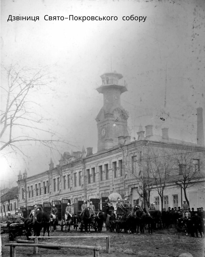 2. Точної цифри висоти пожежної вежі, збудованої на початку ХХ ст. немає, але цілком очевидно, що вона була одною з найвищих. Нагорі чергували пожежники і дивились, чи нема десь загоряння. І в разі виникнення швидко реагували.