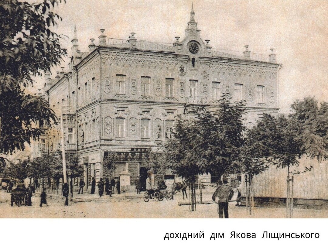4. Серед комерційної і житлової забудови найвищим у 1901 році став дохідний дім Якова Ліщинського. Він єдиний мав цілих 3 поверхи серед інших, здебільшого двоповерхових будинків. У 1905-му під час єврейських погромів його спалили майже повністю, але відбудували за три роки у 1908-му