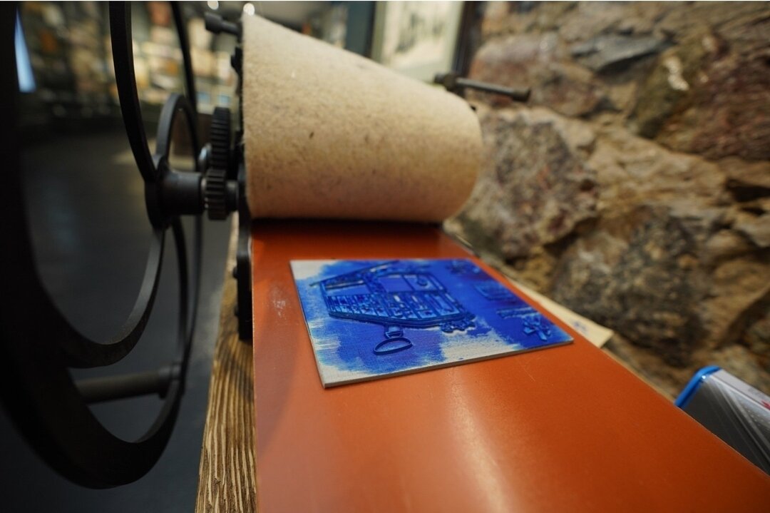 За допомогою єдиного у місті офортного верстата ви отримаєте унікальну можливість познайомитись із технологією гравюри і зробити її власноруч. Все дуже просто: нанесіть чорнило на форму, покладіть на неї папір, накрийте фетром, прокрутіть ручку і зніміть відтиск. І ось у вас вже готова чудова ретро-листівка!