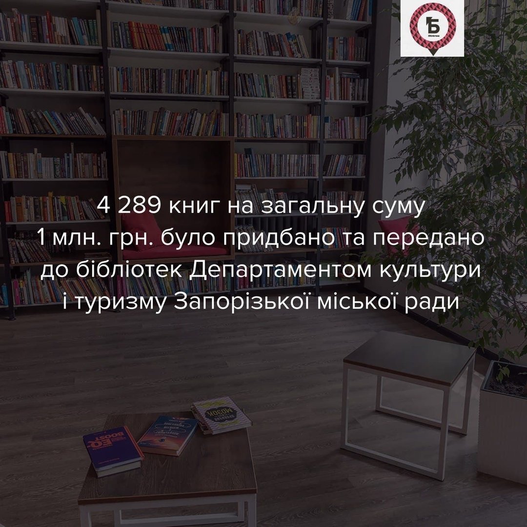 ✅ Департаментом культури і туризму Запорізької міської ради придбано та передано до бібліотек 4289 книг на загальну суму 1 млн. грн.
