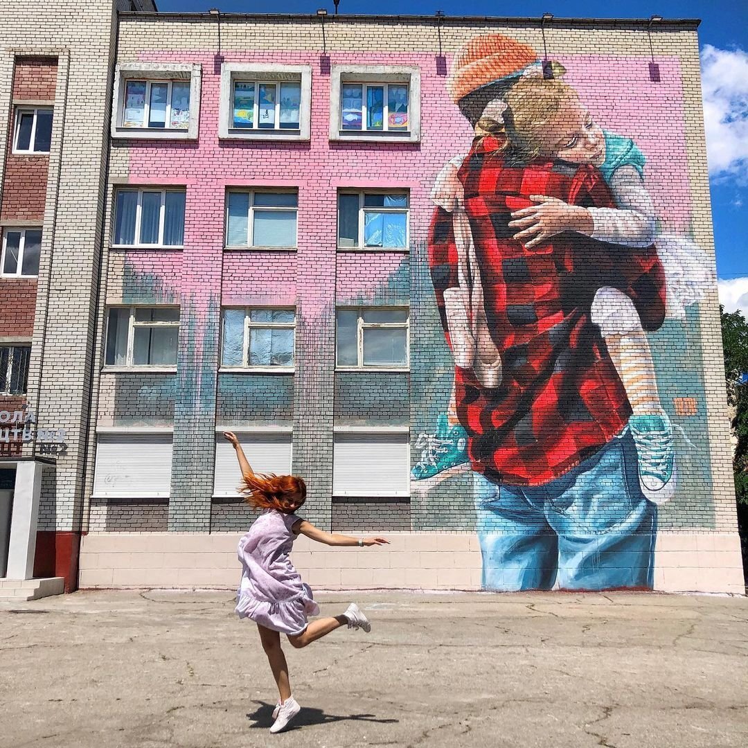 Стінопис створив відомий художник-мураліст Олександр Корбан @sasha.korban. Локація буде кращим вибором для сімейної фотосесії. Головне — більше цікавих задумів та ідей.