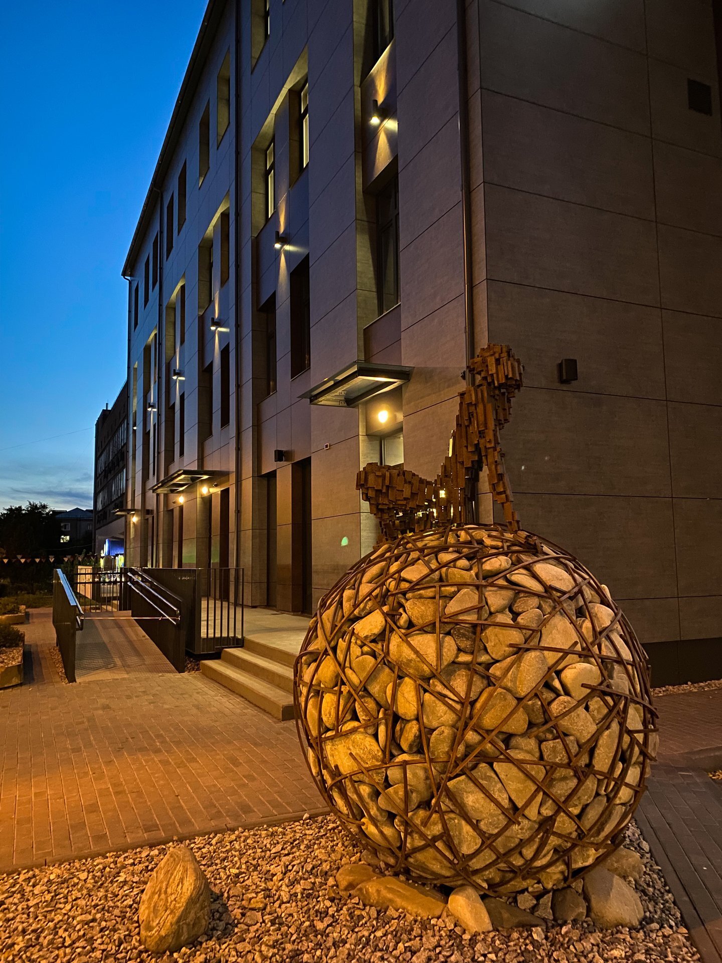 Скульптура прикрашає територію нещодавно зведеного офісного центру.