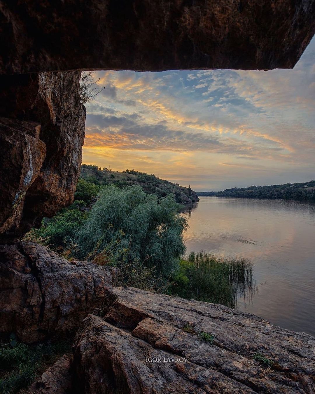 We would like to share secret locations in our city with you. Three cave with a veranda on Khortytsia Island. This interesting landscape monument is located on the coast of the island in the waters of the Old Dnipro. Nature created a kind of veranda with a stone canopy inside the cave.