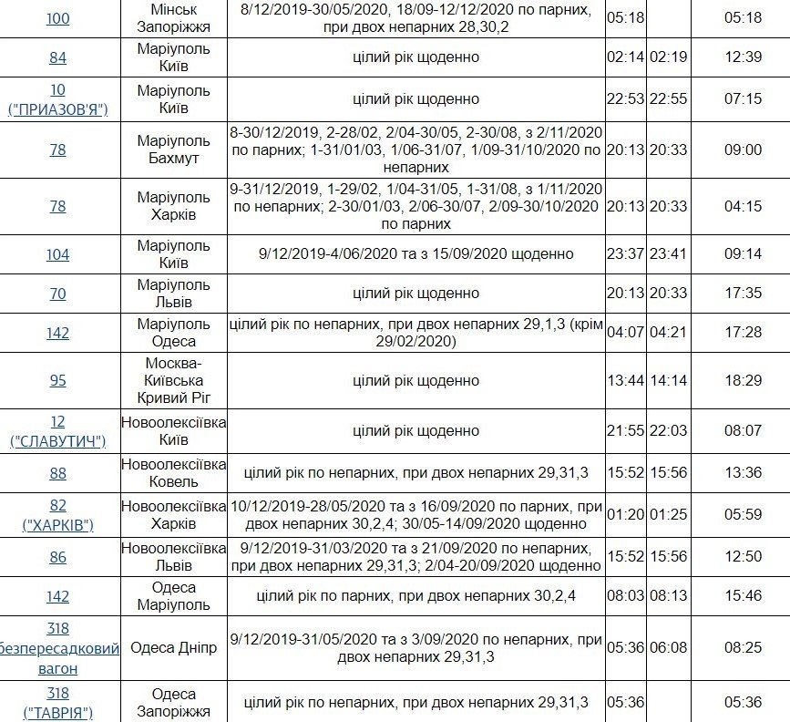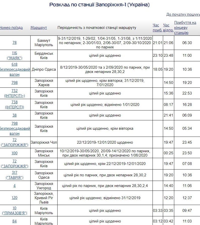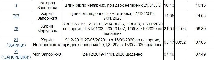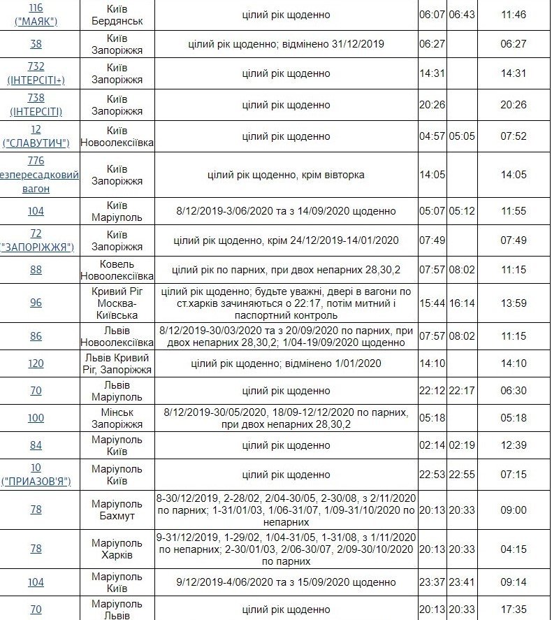 On December 8, a new timetable for trains running through Zaporizhzhia will take effect. Changes have been made to popular routes, such as train 072 being extended to Chop at 19.47. Also train 012 Novoolexivka- Kyiv will depart earlier at 22.03 from Zaporizhzhia to Kyiv .