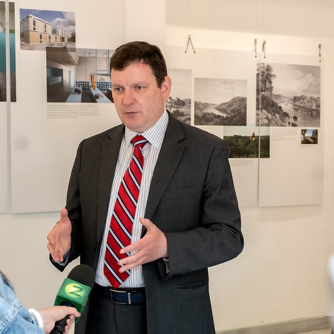 Фотовиставку «The Horizon - Latvia Celebrates 100 years» представив Надзвичайний та Повноважний посол Латвійської Республіки в Україні Юріс Пойканс за участі Почесного консула Латвійської Республіки в м. Запоріжжя Юрія Підгорного та заступниці директора департаменту - начальниці управління туризму департаменту культури і туризму Запорізької міської ради Катерини Сімонової.