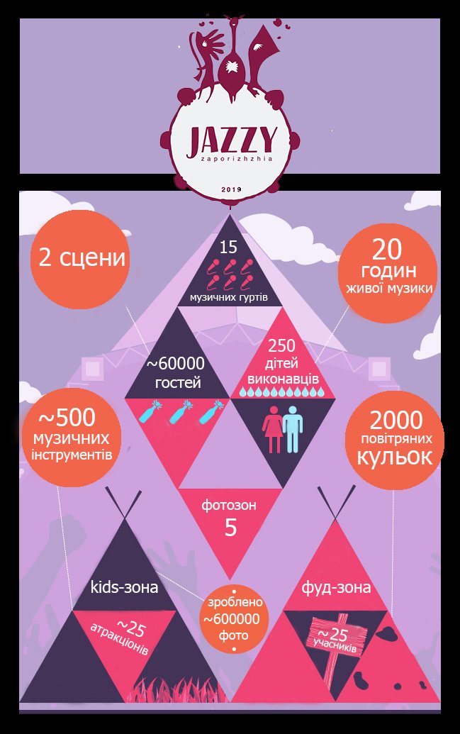 27-28 квітня вдруге відбувся фестиваль Zaporizhzhia Jazzy. Два дні музичної насолоди і відпочинку просто неба з чудовим фуд-кортом та дитячою зоною. Найкращі фото-враження та найбільший спільний пікнік - усе це Jazzy. У нашій інфографіці - короткі цифри цих двох днів, аби осягнути масштаб свята.