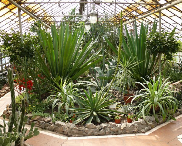 - Оранжерею «Сукулентні рослини» прикрашають представники сімейства опунції, агави, ехеверія, каланхоє, молочаї, алоє, гаттерія та багато інших.