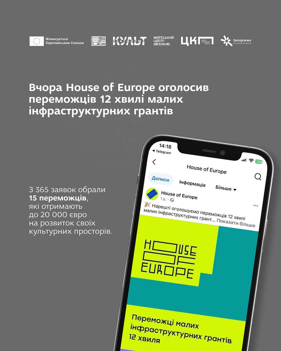 ГО «Культплатформа» у партнерстві з Мистецьким центром ветеранів і Центром культурних послуг реалізує проєкт за грантової підтримки House of Europe