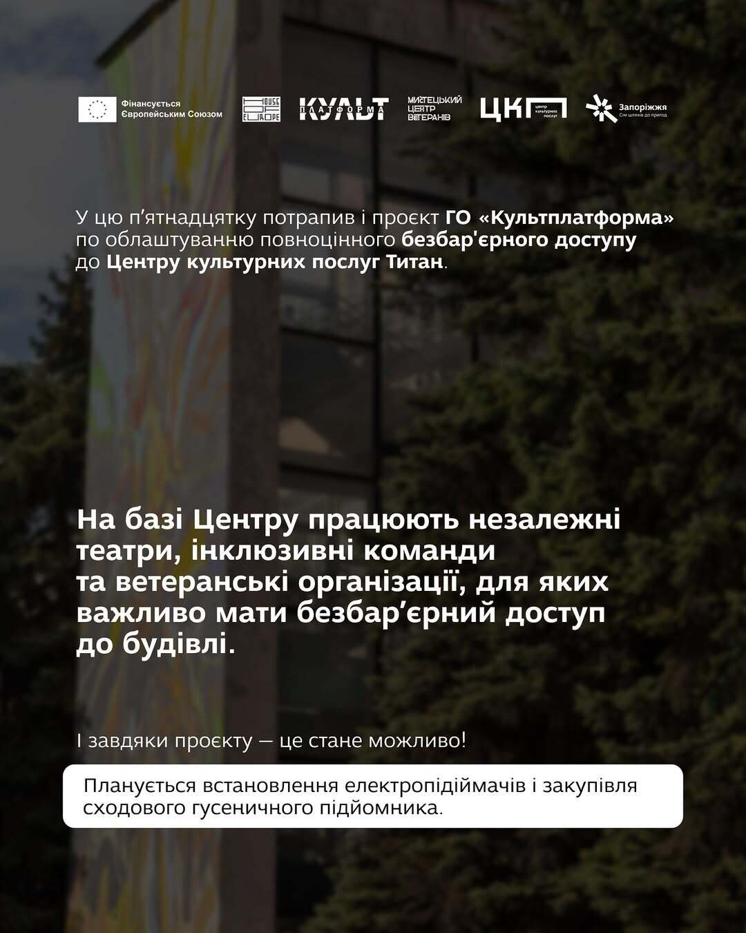 Проєкт «Безбарʼєрність ЦКП «Титан» підтримує Європейський Союз за програмою Дім Європи @houseofeurope.org.ua