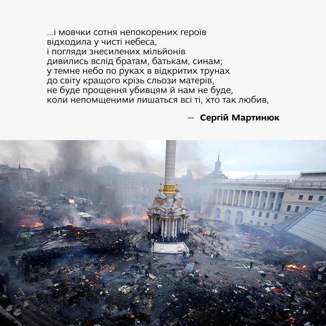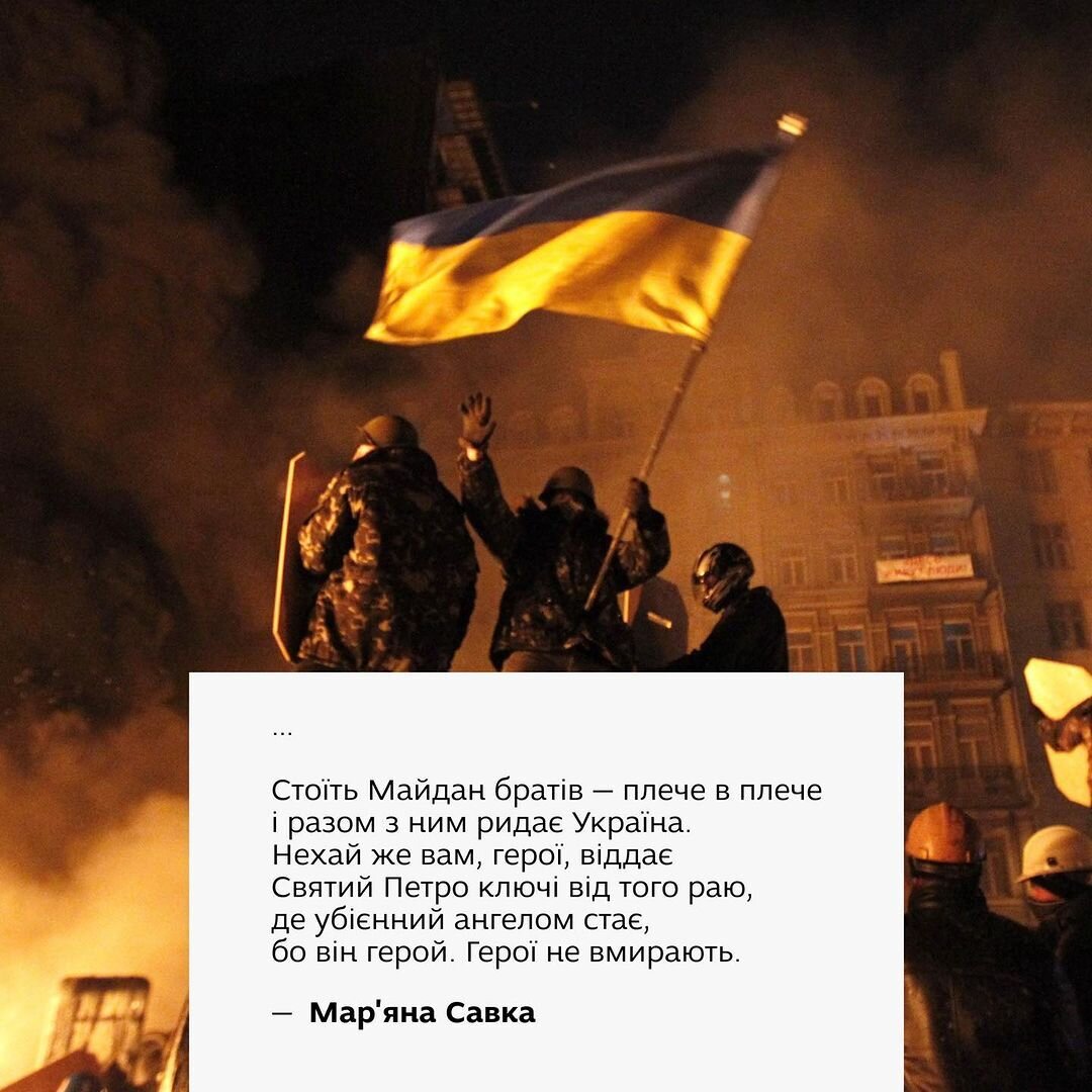 Герої, на жаль, вмирають. Але пам'ять про них живе вічно. На сторінках книг, на екранах смартфонів, в наших душах і серцях. Вшановуємо людей, які загинули на Майдані, виборювавши європейське майбутнє для України.