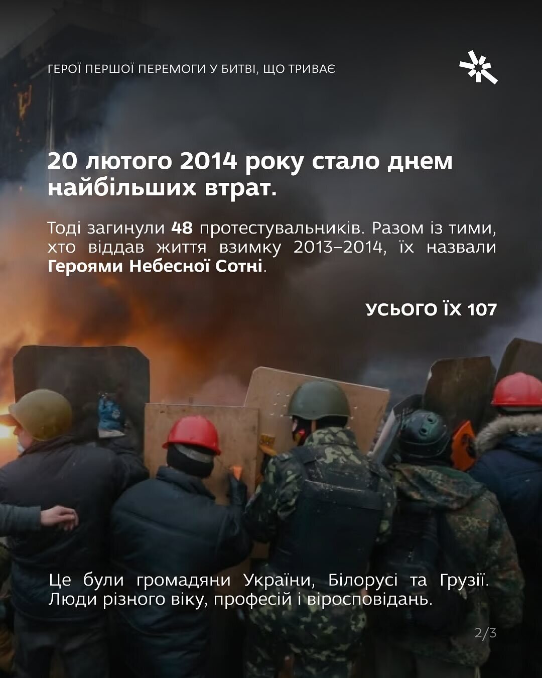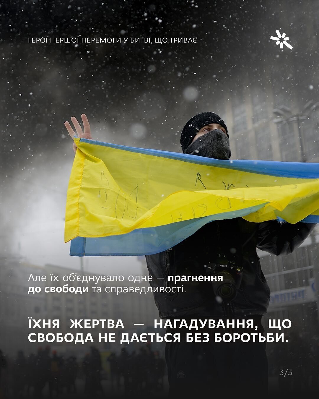 Сьогодні, через 11 років, ми згадуємо Небесну Сотню з гордістю та вдячністю. Вони показали, що українці не здадуться без бою, і стали першими героями у битві, що триває.