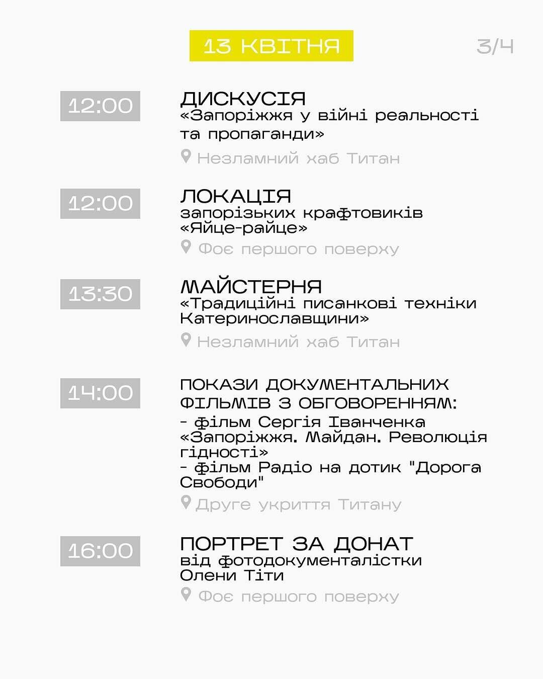 Упродовж двох днів фестивалю працюватимуть запорізькі крафтовики, проходитиме благодійний аукціон на підтримку наших захисників та захисниць, а також буде представлена виставка документальних світлин відомої запорізької фоторепортерки Катерини Клочко @kateryna_klochko