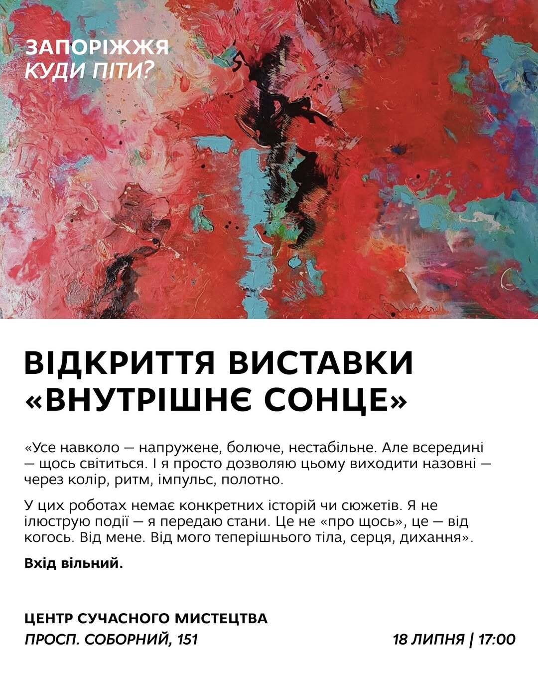 А розпочати вихідні радимо з п’ятничного відкриття виставки у @artcenter.zaporizhzhia