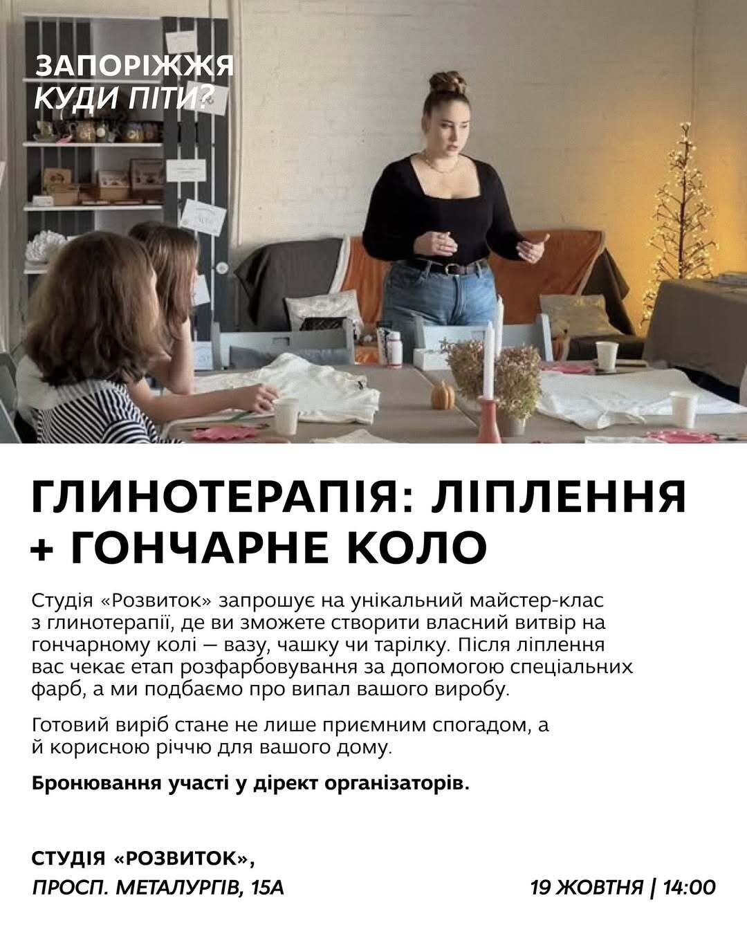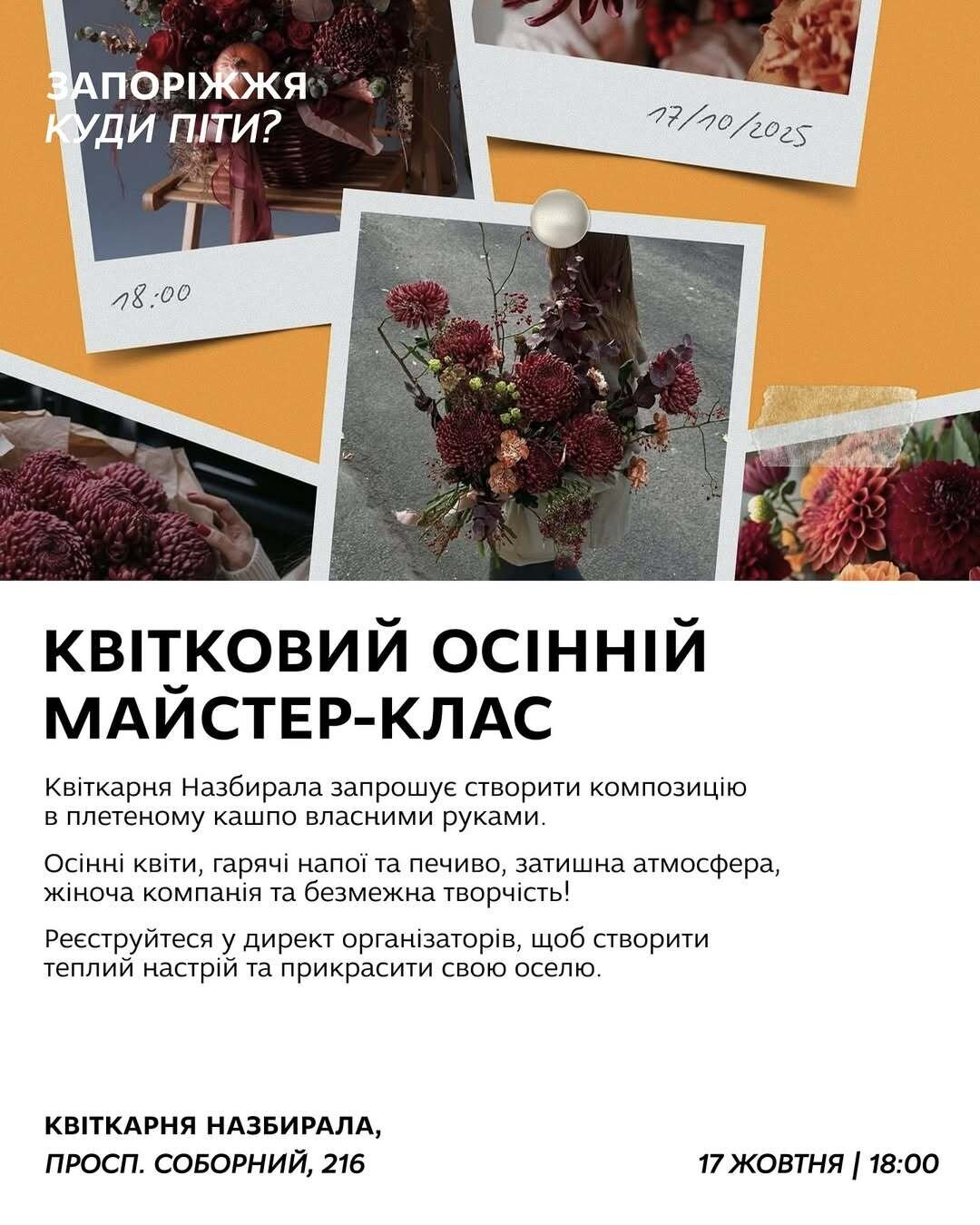 Концерти або вистави, опера або відкриття виставок, осінній ярмарок або екскурсія музеєм, глинотерапія або осінній квітковий майстер-клас...