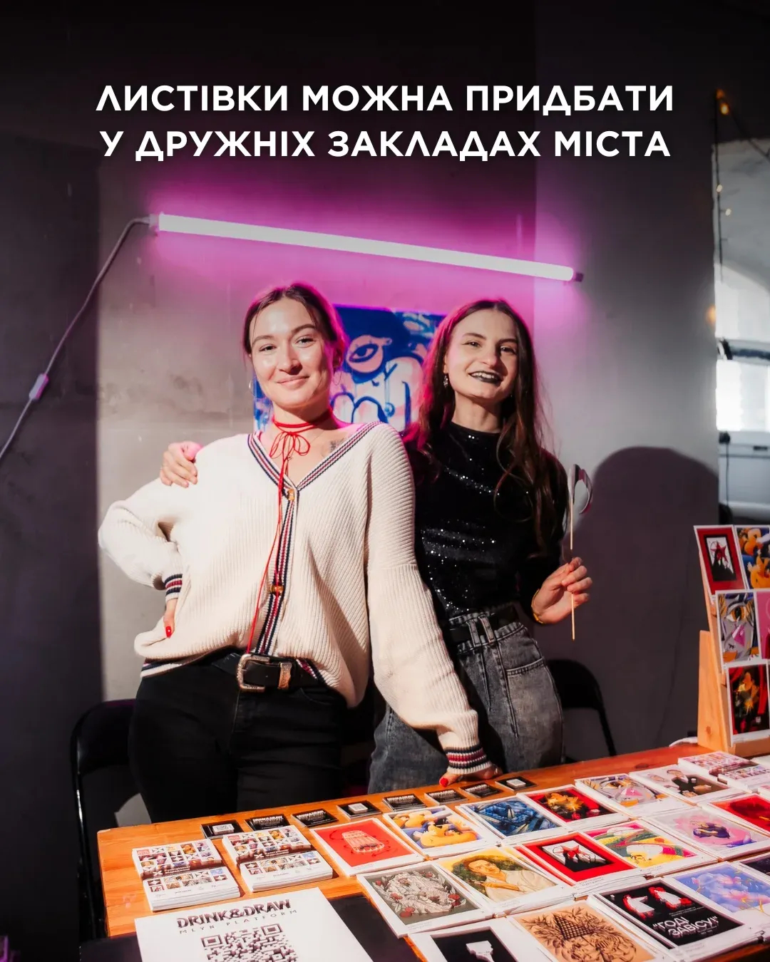Усі кошти з продажу листівок йдуть на Рятівний збір Патронатної служби «Янголи» @ab3.angels, яка допомагає пораненим захисникам. Це частина великої благодійної ініціативи фестивалю Shevchenko Rave.