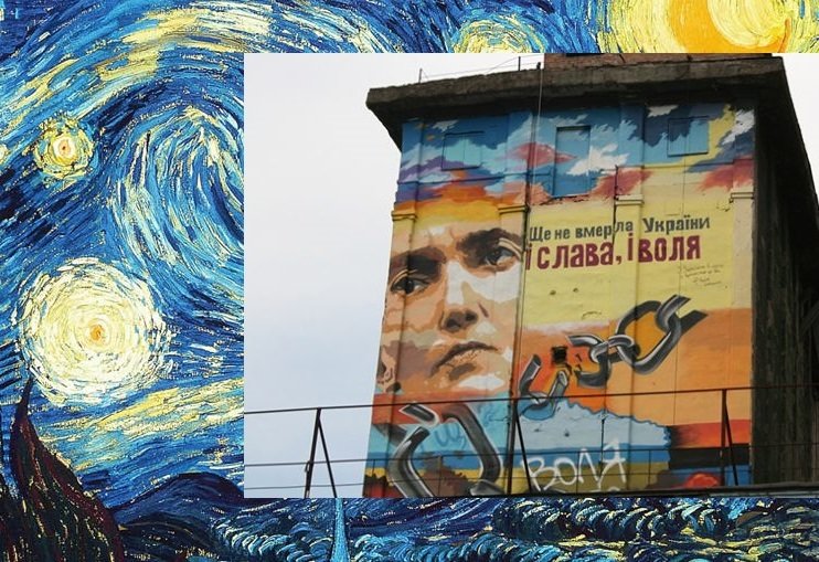 Мурал з зображенням Надії Савченко знаходиться по вулиці Сергія Серікова, 30. Авторами цього чудо-витвору є Юрій Мудрих й Антон Касьян.