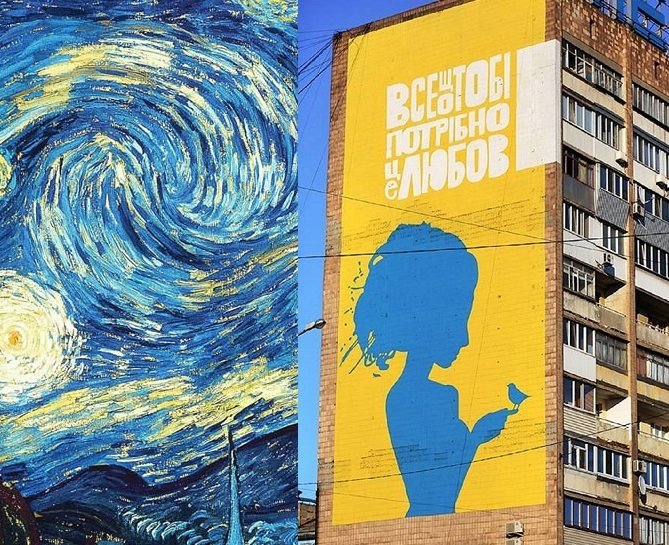 В рамках проекту “Сучасне місто” в Запоріжжі з'явився мурал в жовто-блакитних кольорах, що зображає дівчину з птахом в руках та написом про любов.