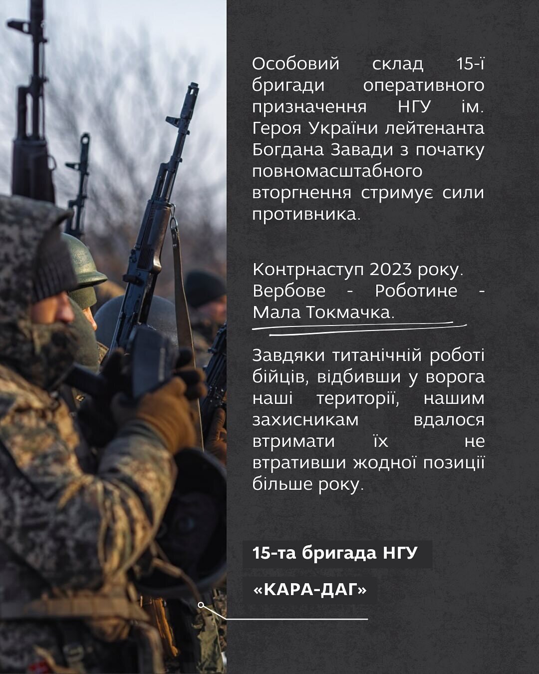 Ця виставка призначена тим, хто від Мелітополя до Василівки понад три роки стримує переважаючі сили противника. Особовий склад 15-ї бригади оперативного призначення НГУ «Кара-Даг» @15th_brigade_ngu продовжує здійснювати героїчну оборону та виконувати бойові завдання на донецькому напрямку.