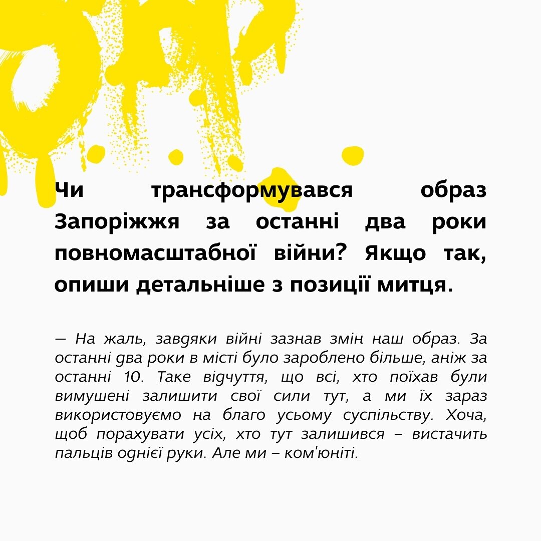 Про трансформацію Запоріжжя та образ міста – про все це детальніше на картках.