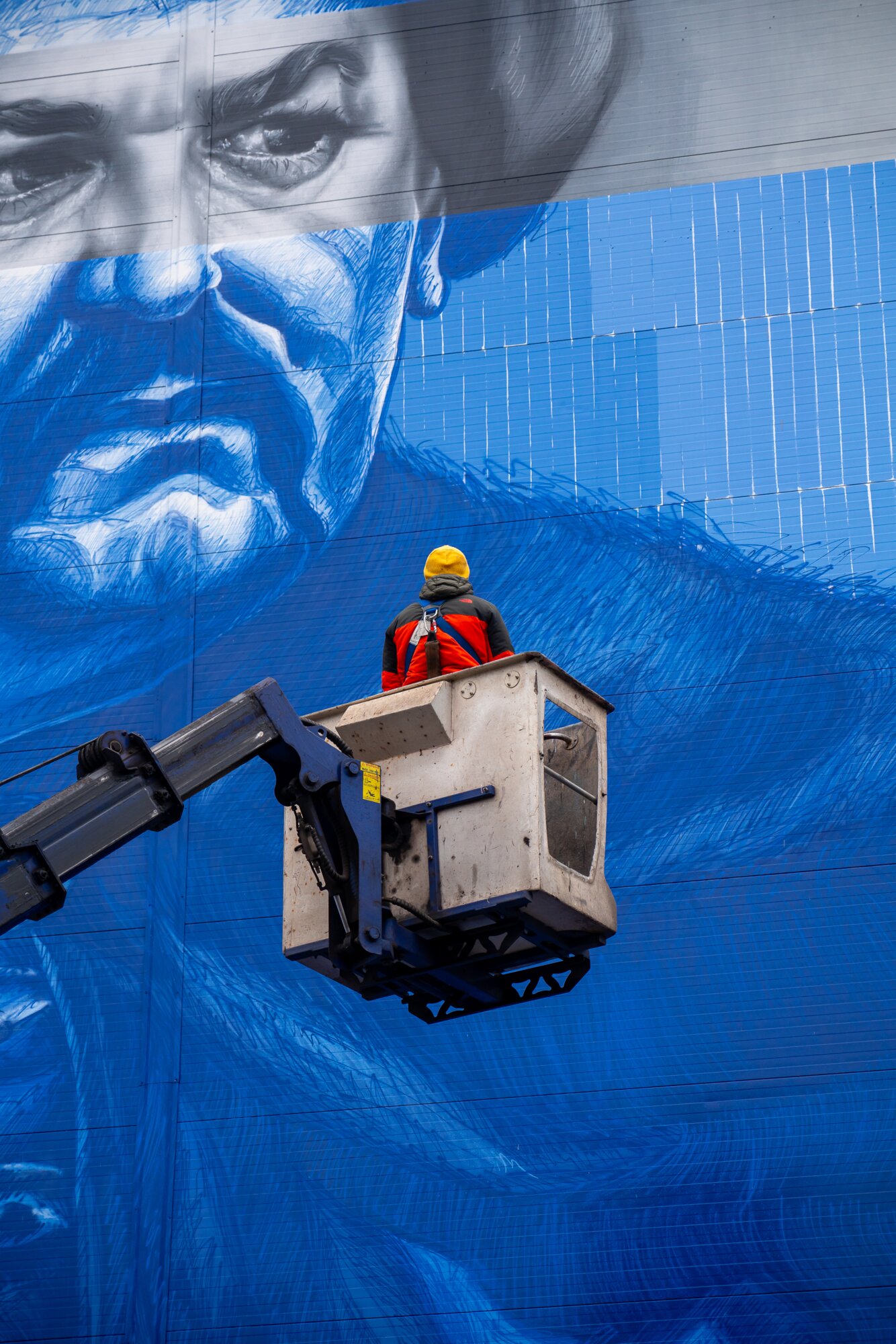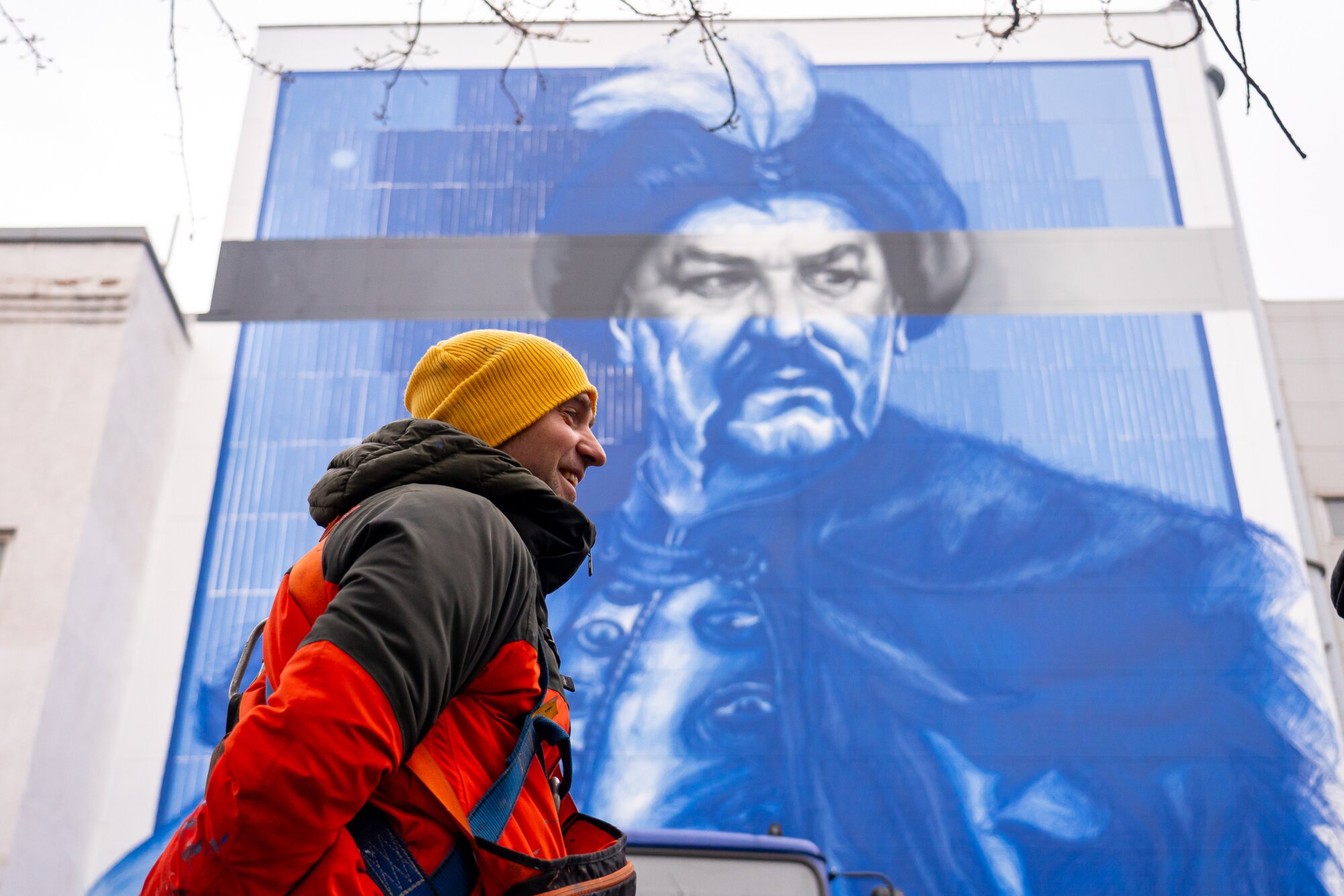 Створив портрет легендарного українця Саша Корбан — відомий український вуличний артист і мураліст. Це — не перший візит митця до Запоріжжя. Саша вже відомий у нашому місті як автор стінопису Олександра Цфасмана біля театру Магара, роботи “Тато з донькою” на будівлі Запорізької дитячої школи мистецтв №2. Портрети запорізьких спортсменів і спортсменом авторства Саші прикрашають простір Музею Феноменальної Сили.