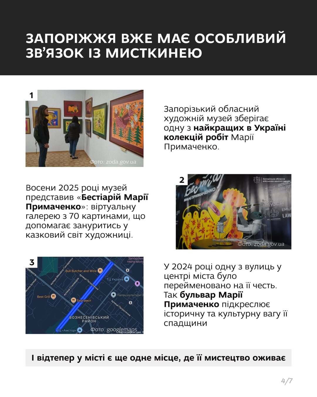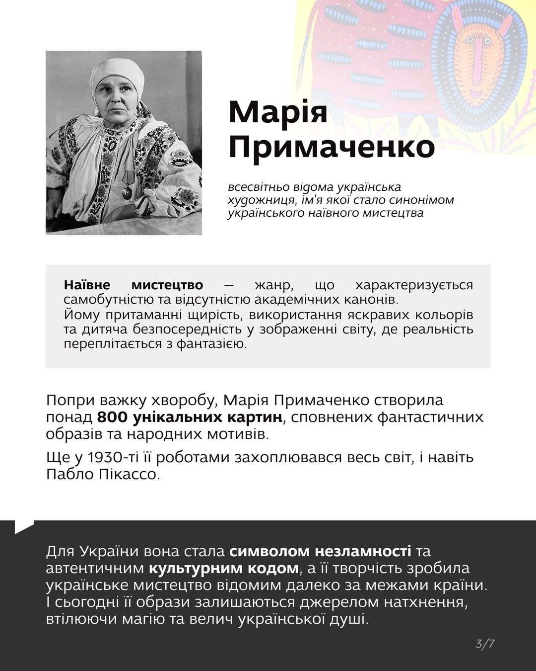 Гортайте карусель, щоб дізнатися більше про Марію Примаченко та про те, як її творчий спадок пов’язаний із нашим містом.