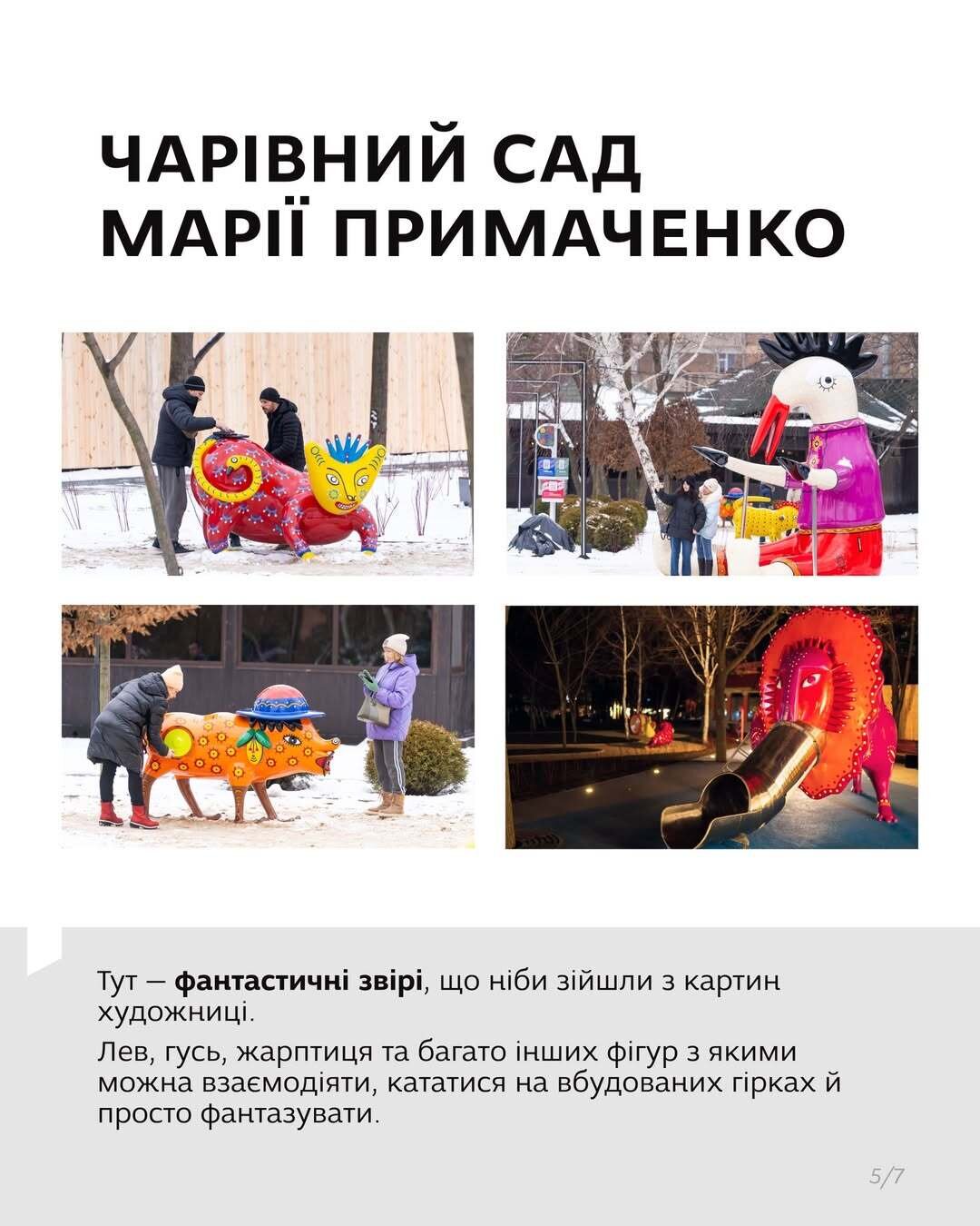 Тут оселилися казкові звірі, що ніби щойно зійшли з полотен видатної художниці. Це простір, де діти можуть гратися серед диво-створінь, а дорослі — на мить зануритися у світ мистецтва та фантазії ✨