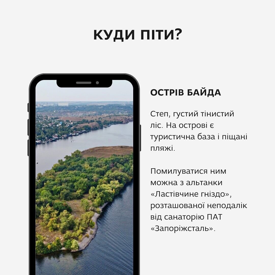 Місце, де історія переплітається з природною красою. Мальовничі скелі, густі ліси, нещодавно відчинена Запорізька Січ та неймовірна атмосфера. Прогулянка Хортицею – це можливість насолодитися тишею, слухаючи шум Дніпра та спів птахів.