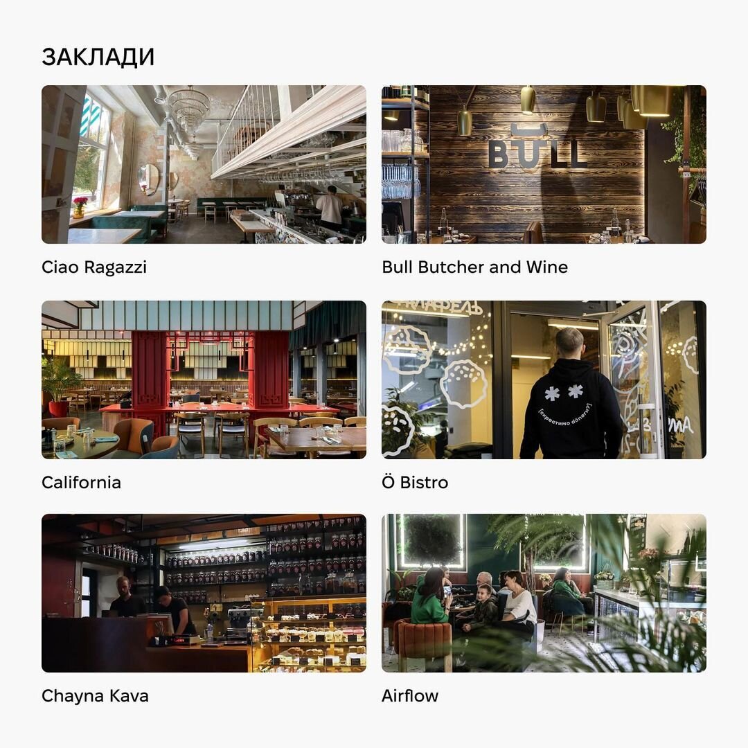 Більше 30-ти бізнесів, серед яких кавʼярні, заклади харчування, торгівлі та надання послуг.