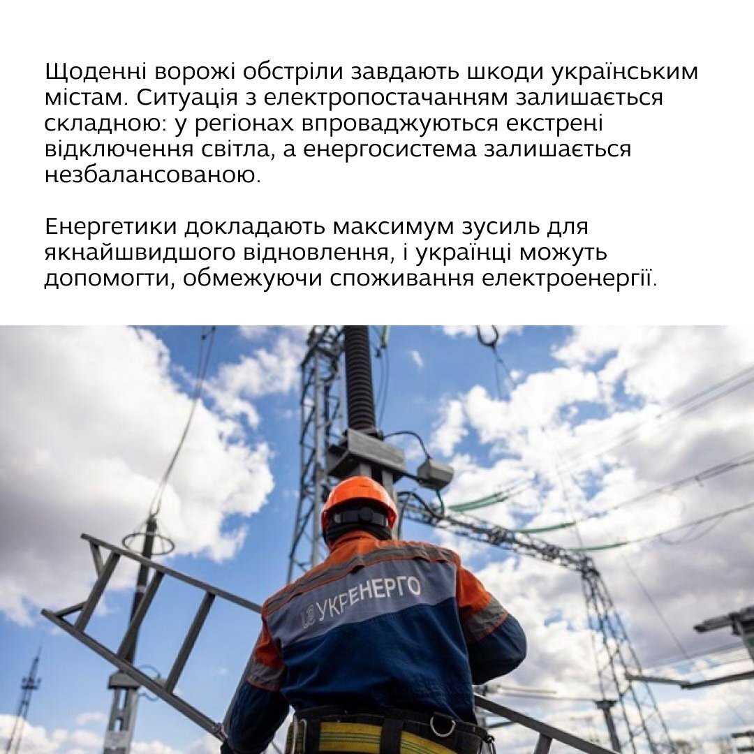 Останні події в Україні, зокрема обстріли енергетичної інфраструктури, створюють нові виклики для нашої енергетичної системи. В умовах кризи кожен з нас може зробити свій внесок у забезпечення стабільності енергопостачання та у розвиток раціонального споживання електроенергії.