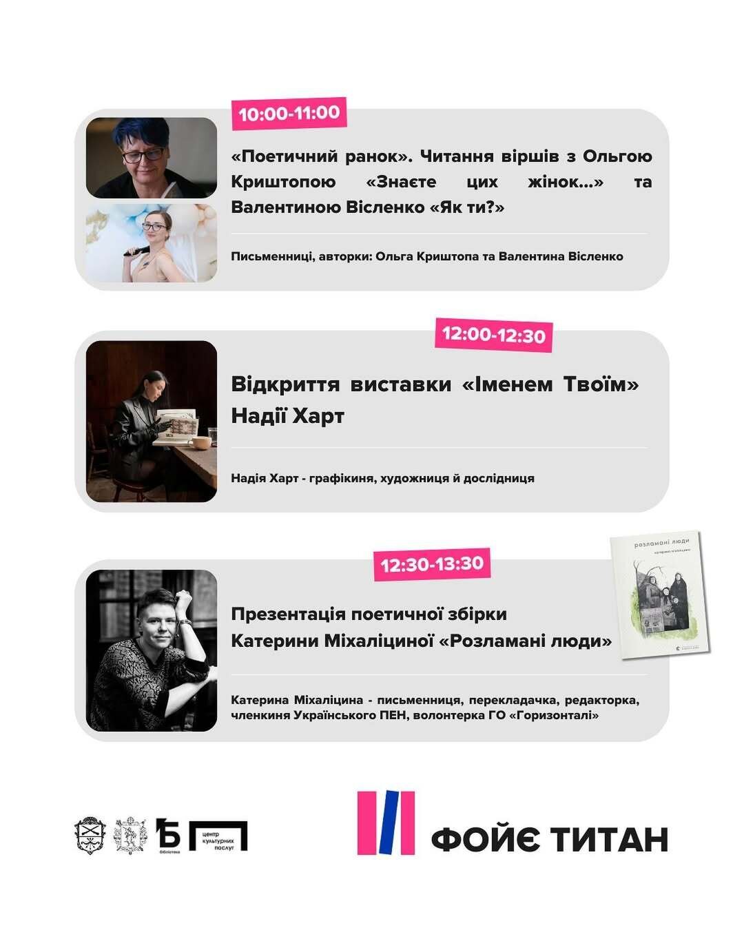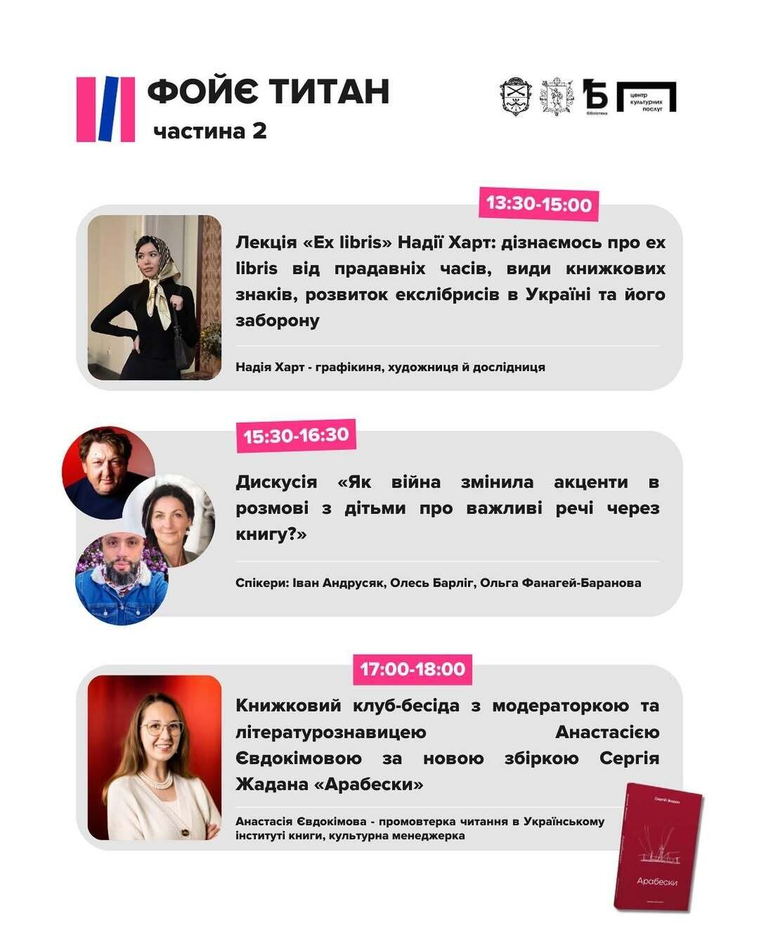 - зустрічі з авторами: ексклюзивні презентації, автограф-сесії та дискусії з улюбленими письменниками.