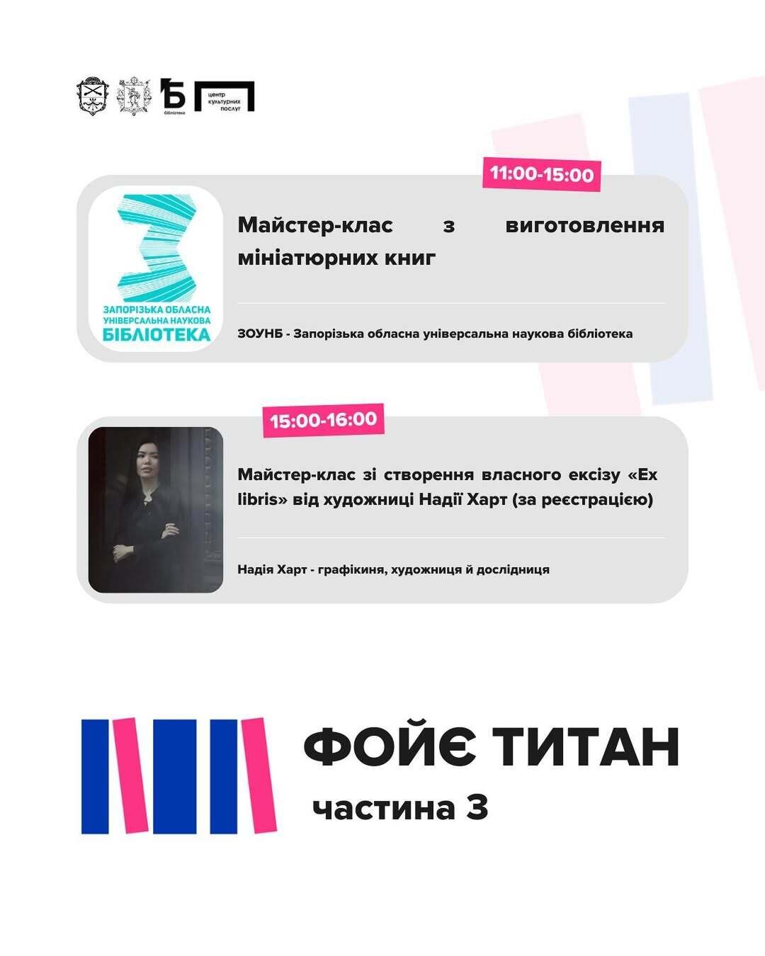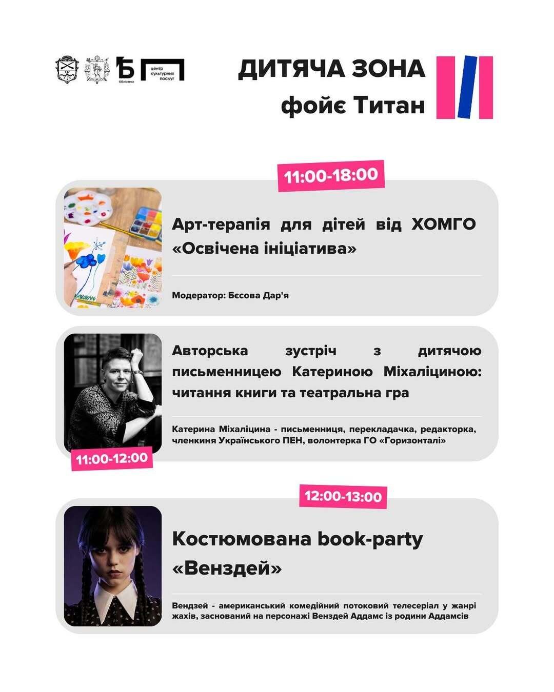 - майстер-класи та воркшопи, дитяча програма та фотозона.