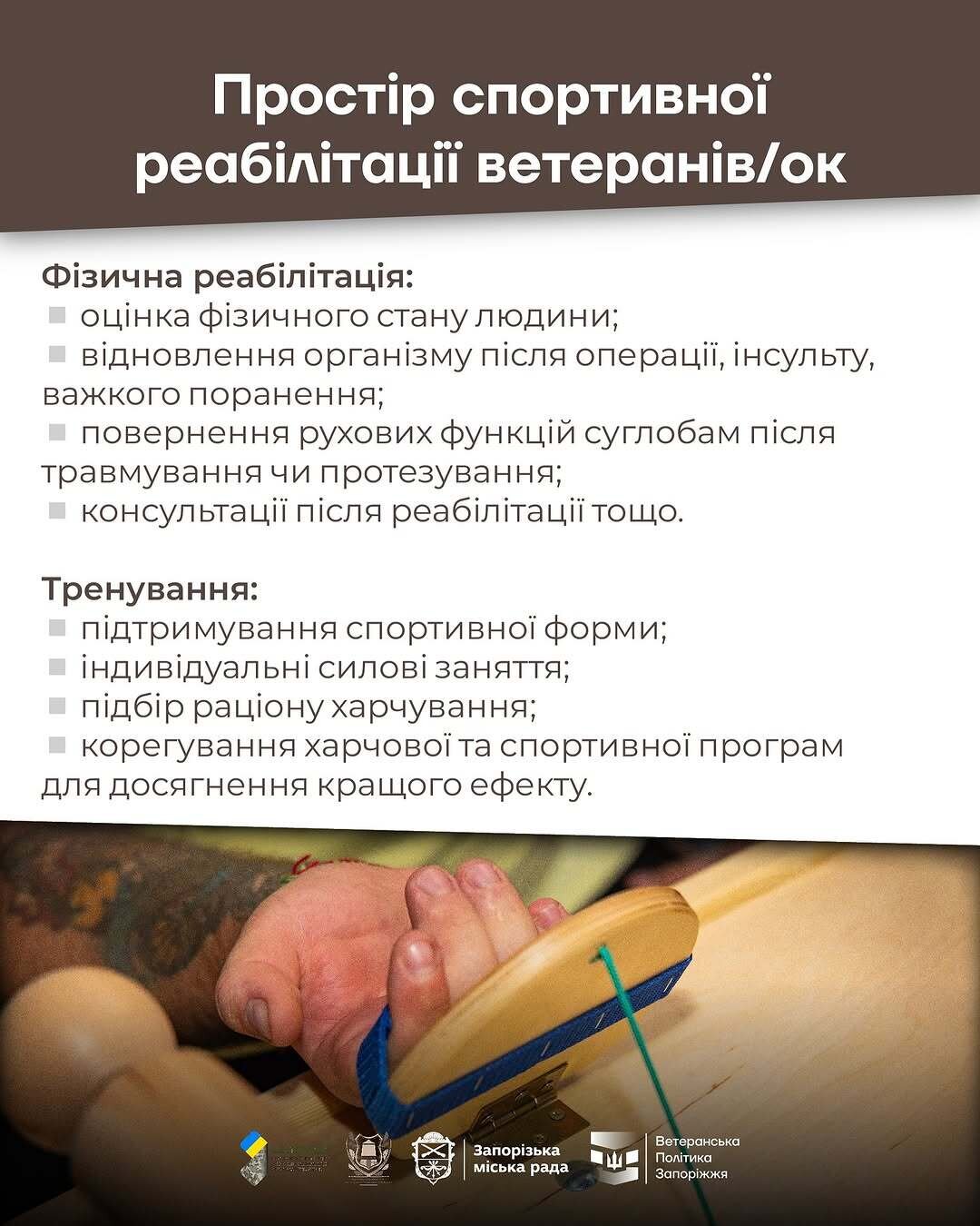 Реабілітаційний простір ветеранів українського війська «Блокпост» надає безоплатні послуги за різними напрямками.