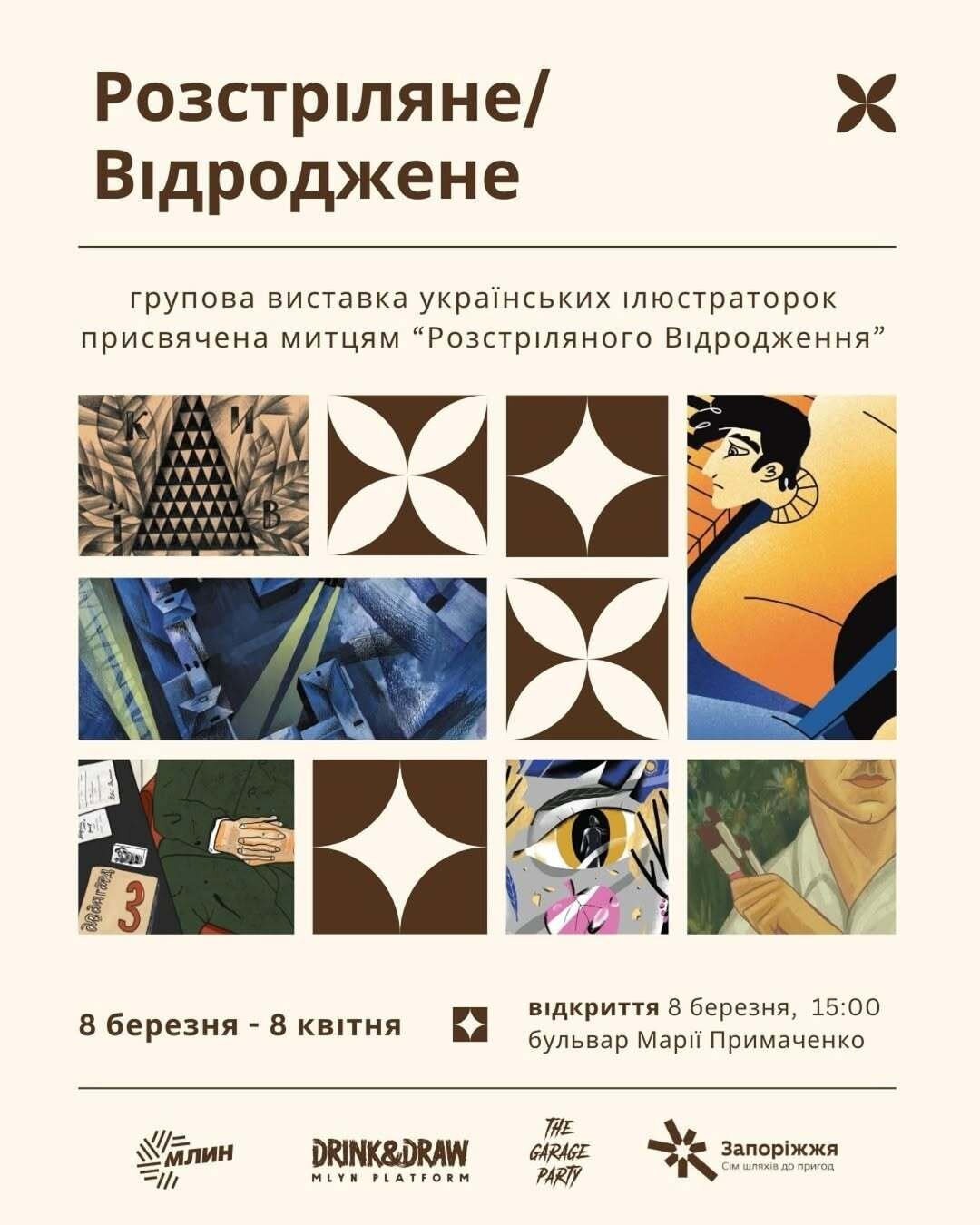 представляє 19 ілюстрацій від українських мисткинь зі всієї України, які подавалися в межах open call, присвяченого «Розстріляному Відродженню». Сьогодні в вільній країні, яка всіма силами протистоїть прямій агресії росії, в тому числі й інформаційній, ми маємо унікальну можливість не лише увічнити пам’ять, а й глибше переосмислити творчість українських митців, яких було знищено і закатовано майже 100 років тому. Виставку організовано за кураторства Льони Радченко (@liona_radchenko )та Марії Голубєвої (@mary_lee.in.art ), на базі запорізької спільноти художників Drink&Draw Mlyn @drinkndraw_mlyn (@mlyn_platform )