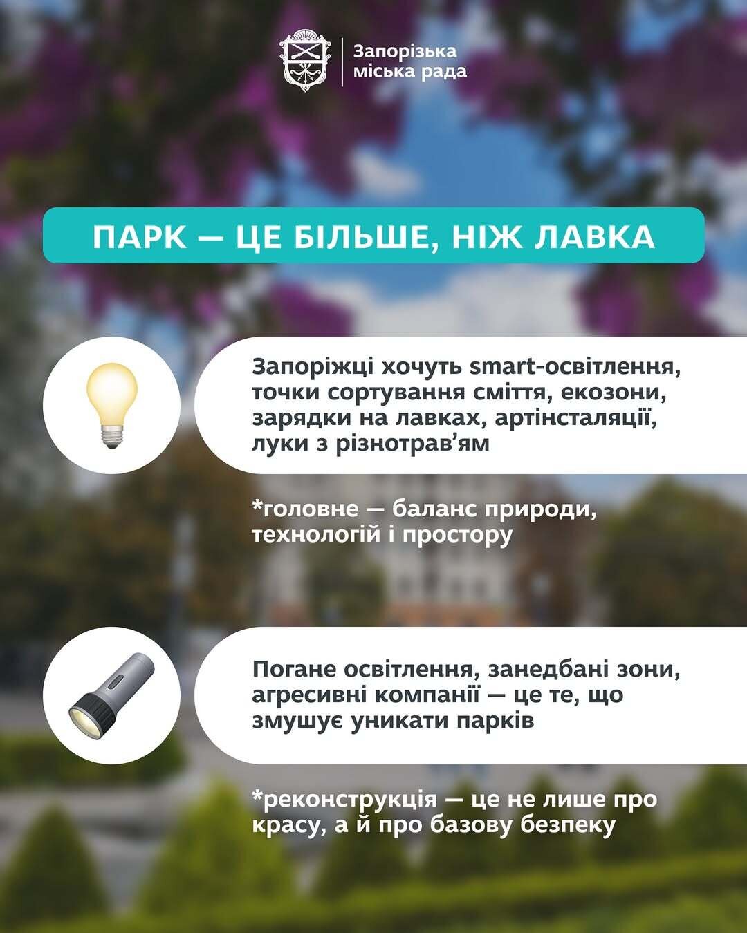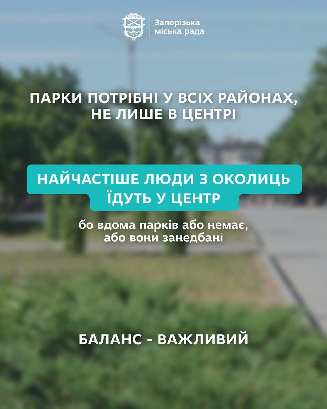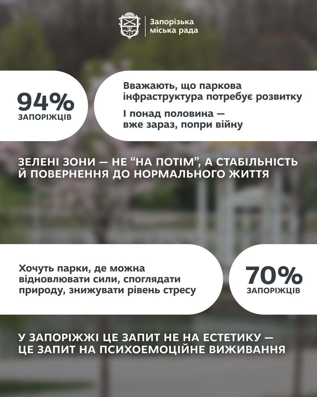 Результати стали підґрунтям для формування дослідження щодо розвитку території парків і скверів міста Запоріжжя. І саме думка мешканців міста - у центрі уваги.