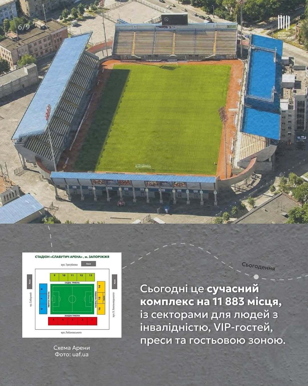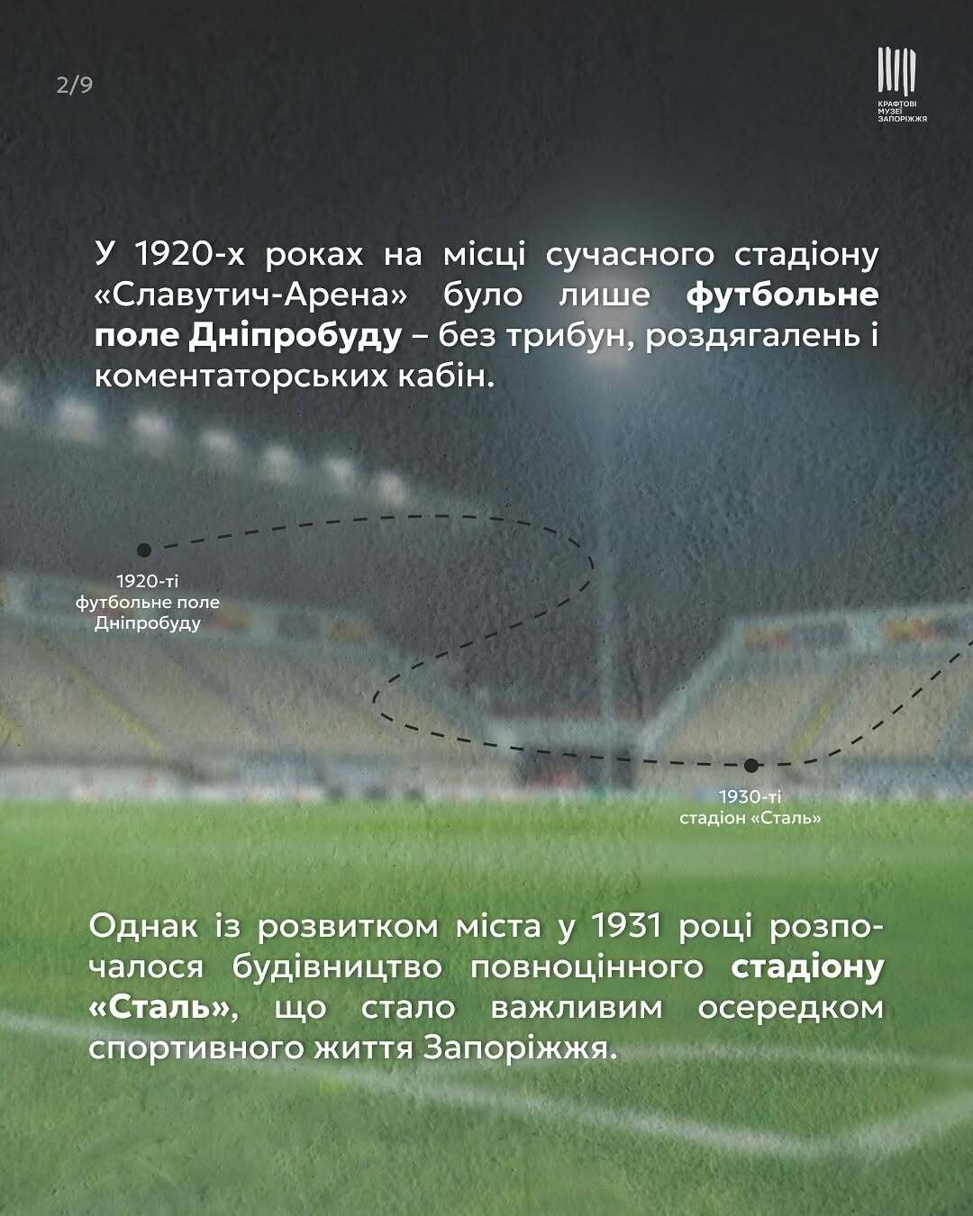 Минуле і сьогодення зустрічаються тут — на головній арені Запоріжжя. Колись це було звичайне футбольне поле без трибун, а сьогодні — сучасний стадіон, що приймав єврокубки, фінали Кубка України та гучні концерти.