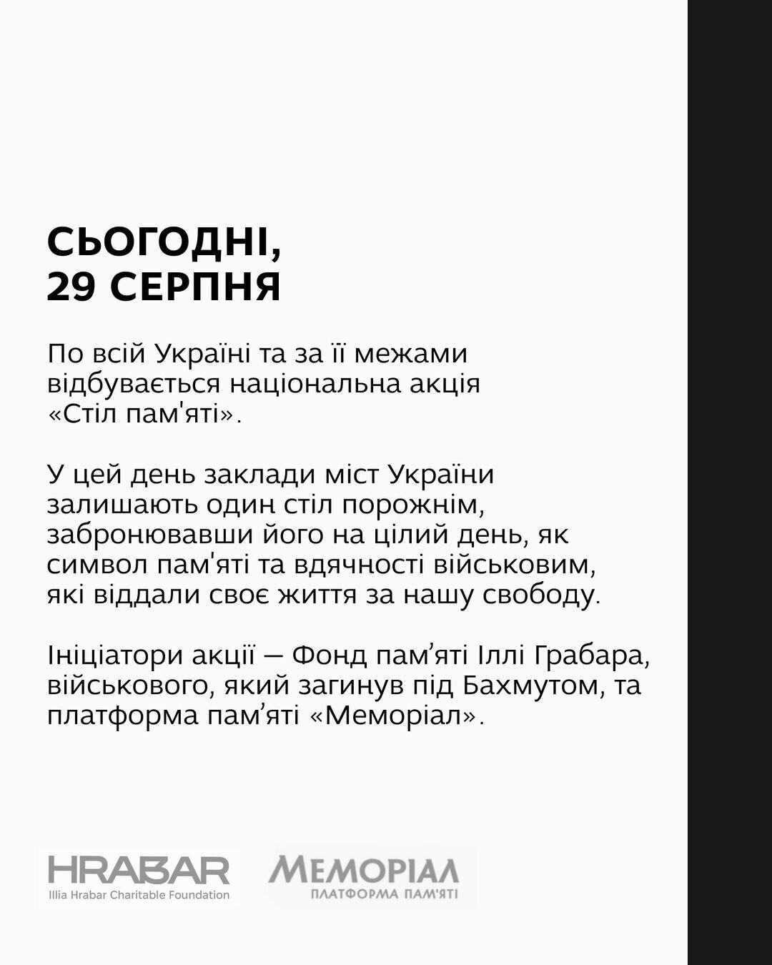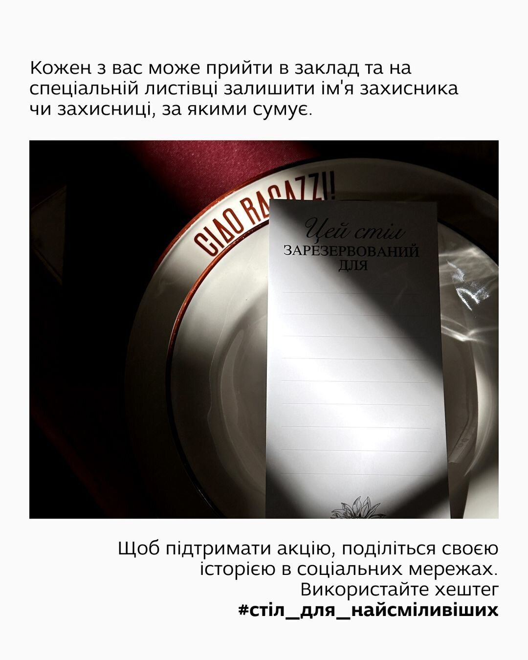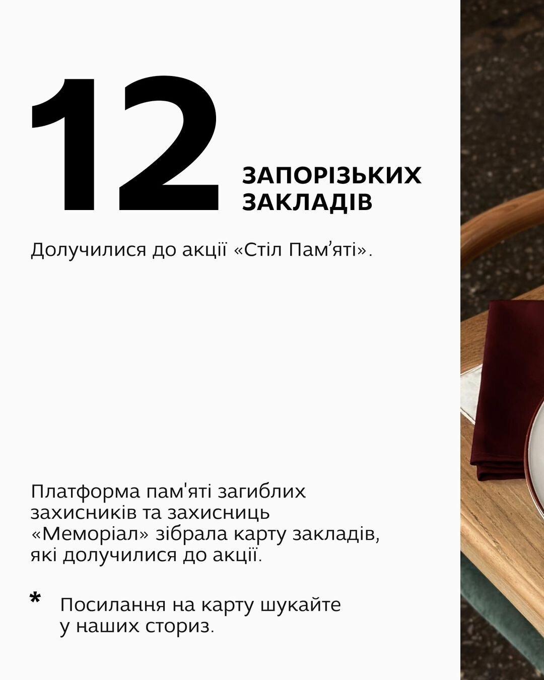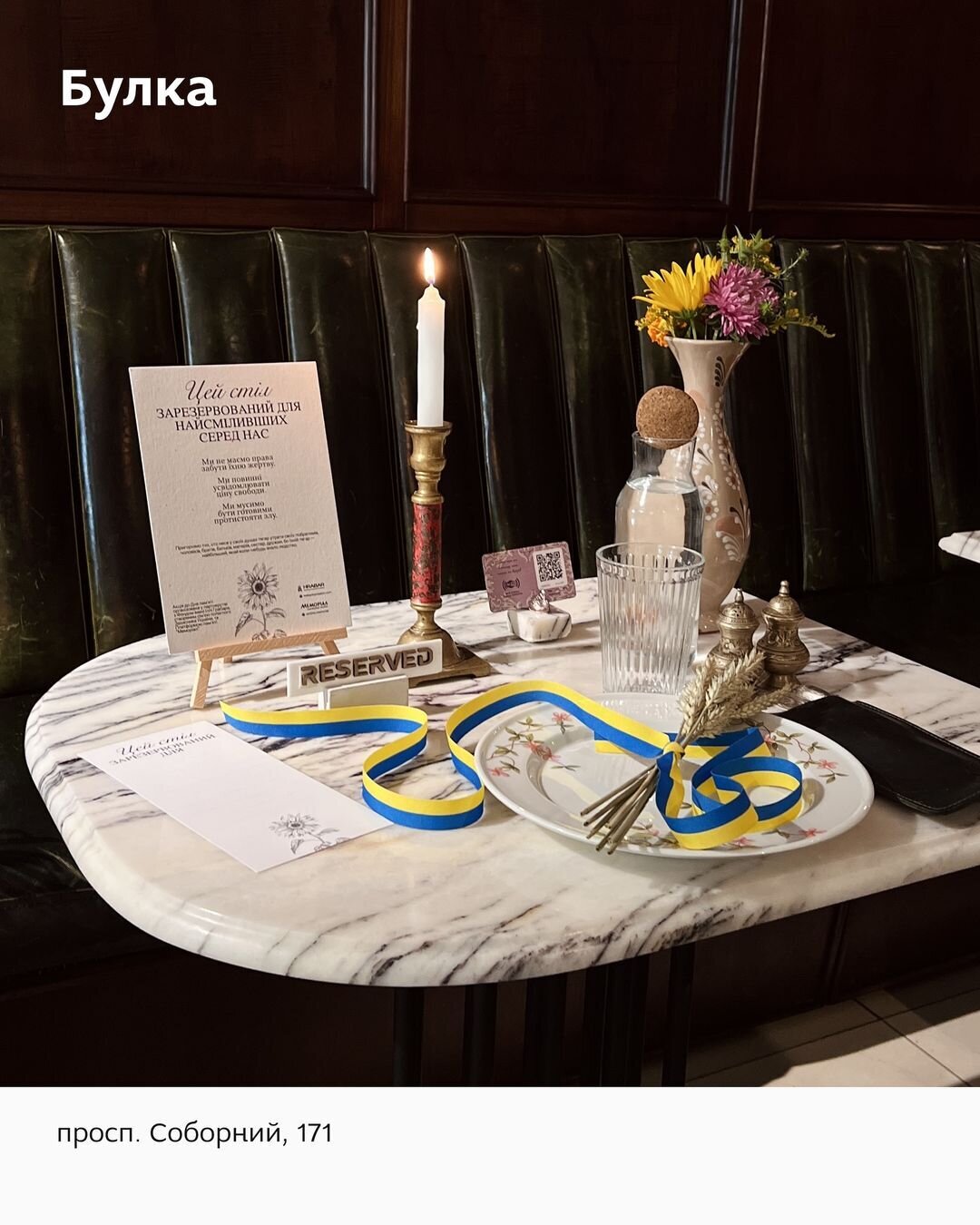 У День пам’яті загиблих захисників, заклади України зарезервували столик на честь полеглих героїв за суверенітет, свободу та територіальну цілісність нашої країни. Акцію «Стіл пам’яті» підтримали і запорізькі заклади.