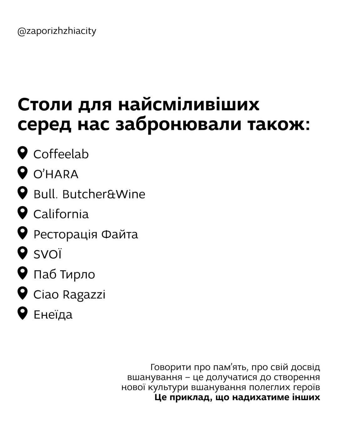 Дякуємо @memorial.of.heroes, @hrabarfoundation та кожному закладу Запоріжжя, який не залишився байдужим і долучився до акції.